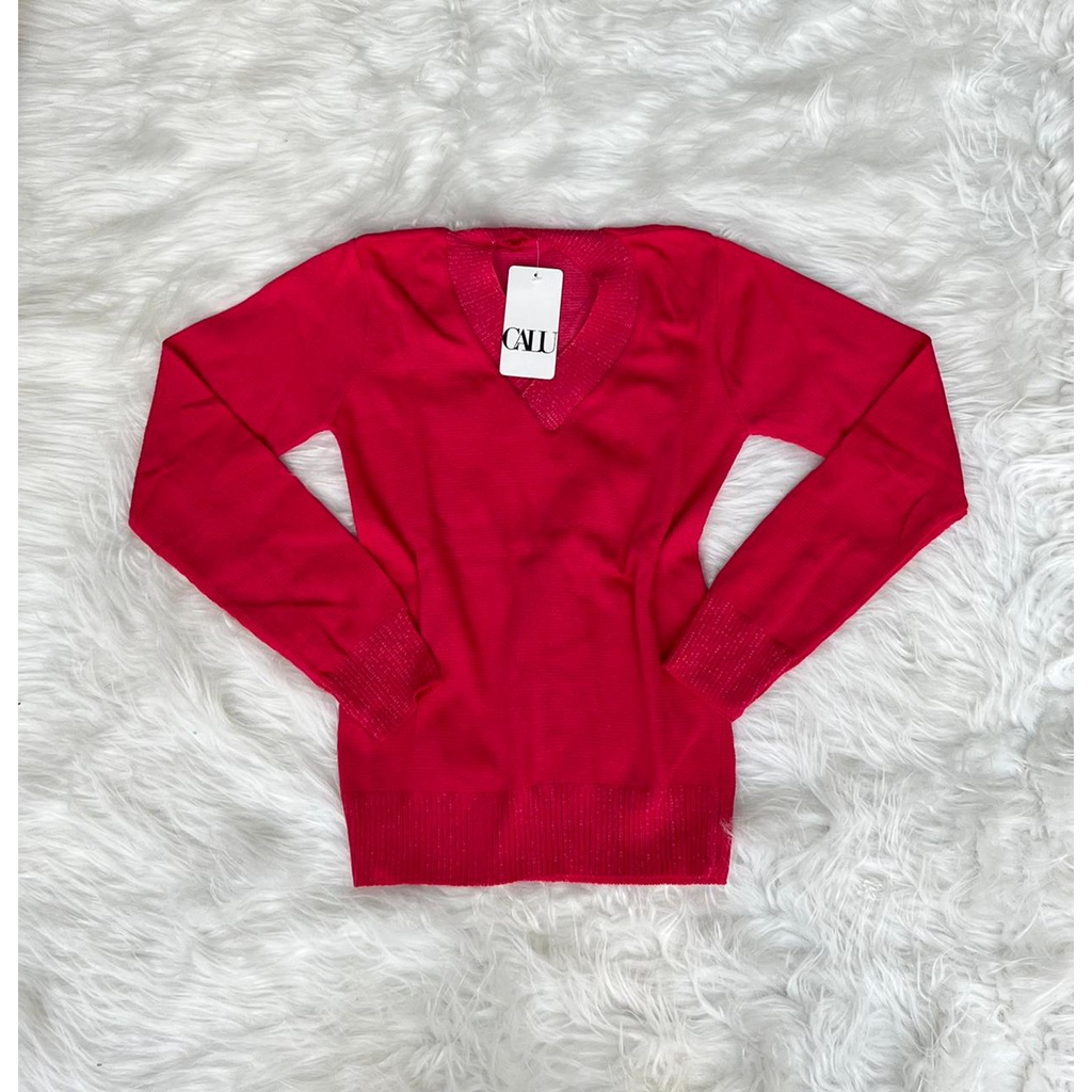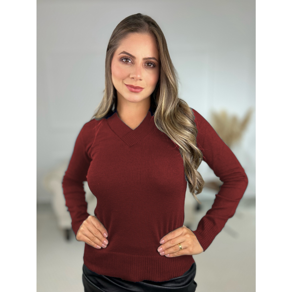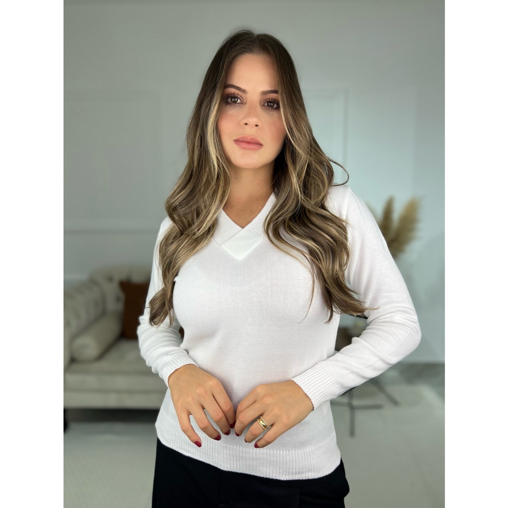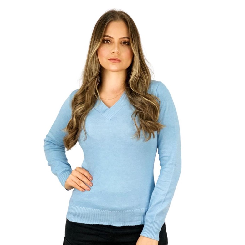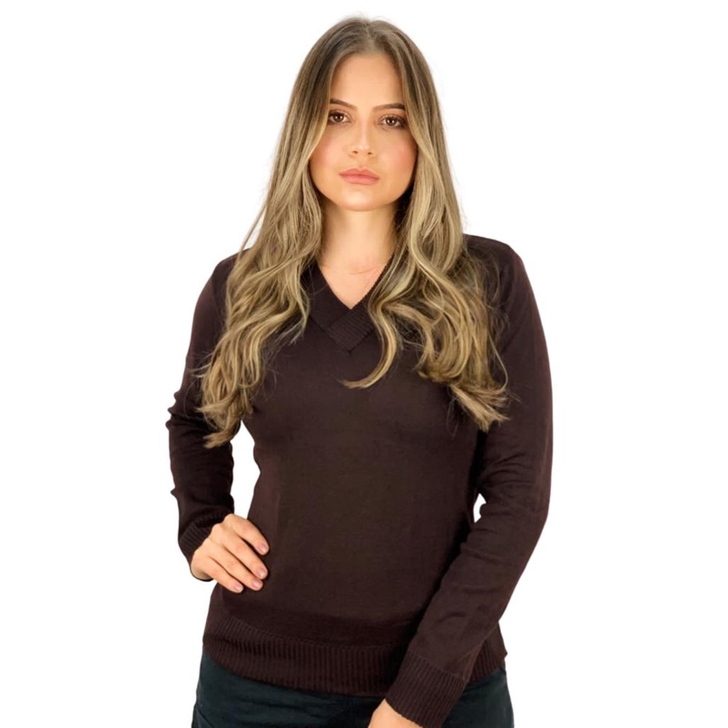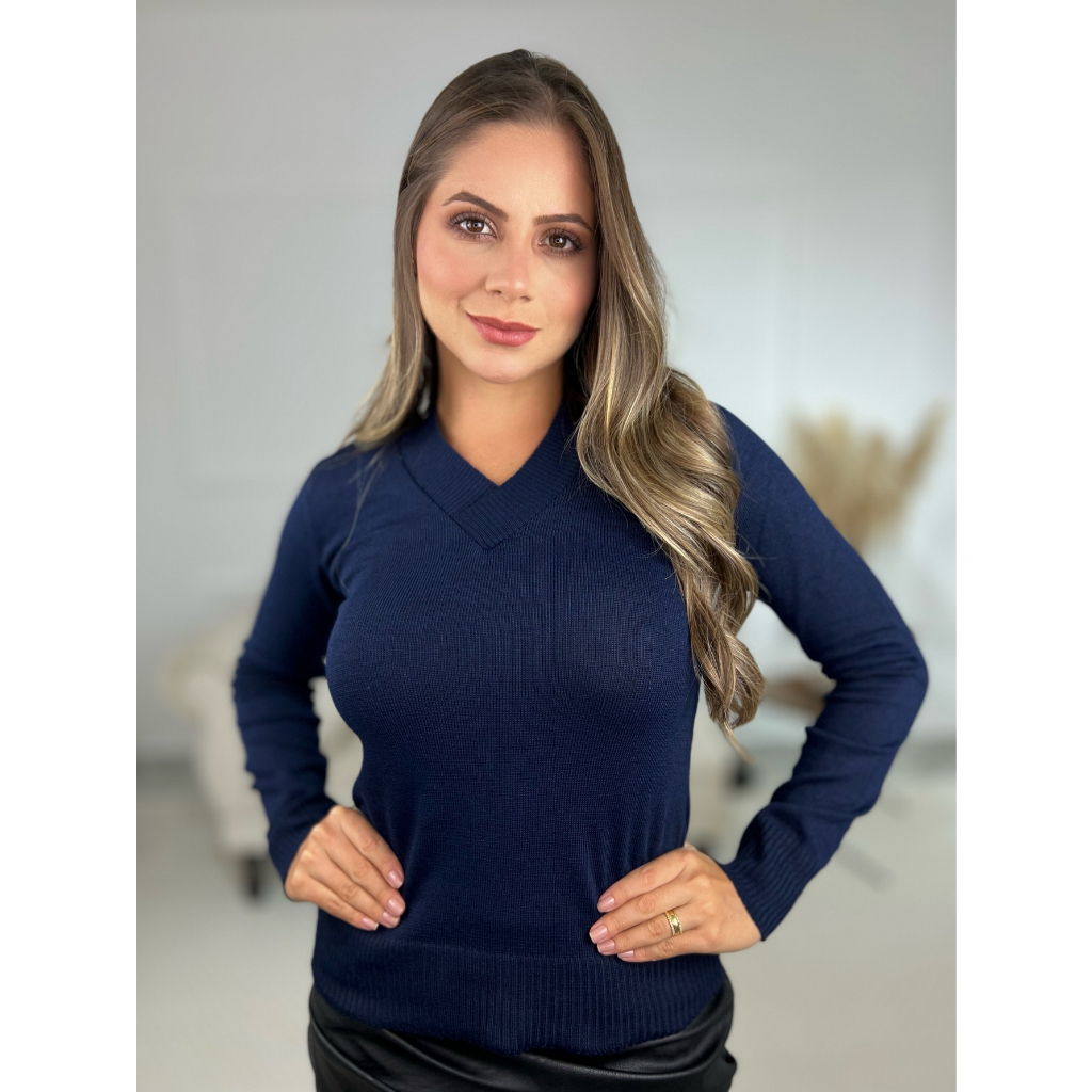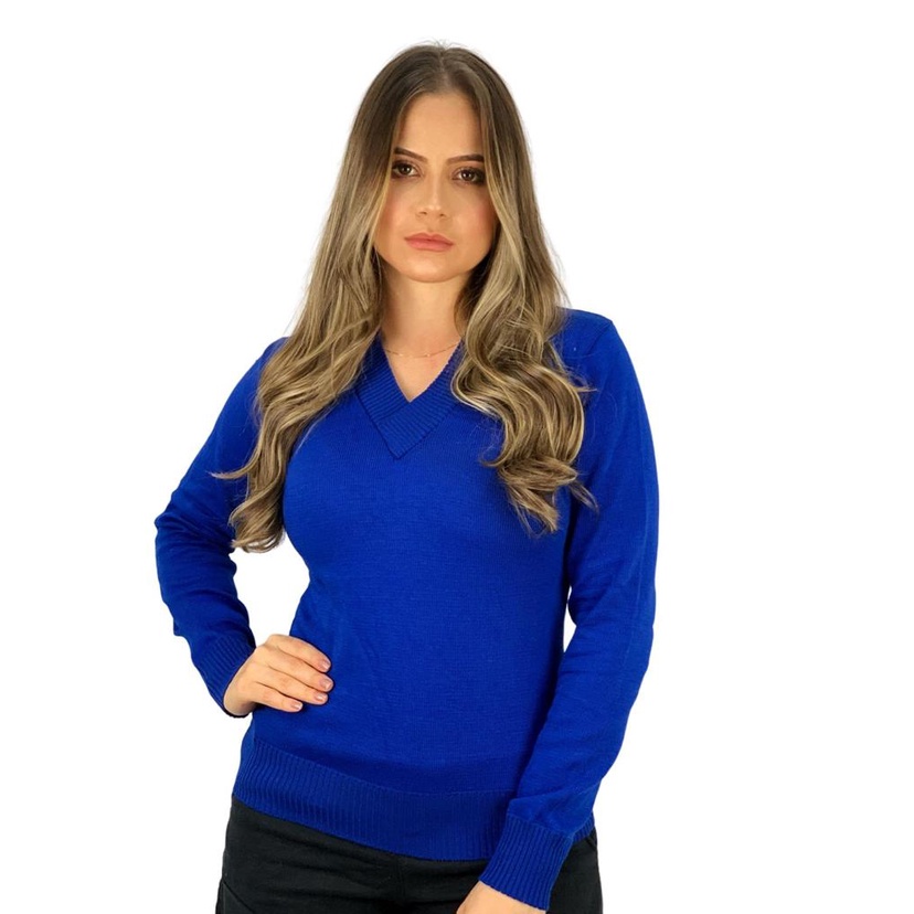 Blusa Trico Basica De Frio Feminina Decote V Manga Longa