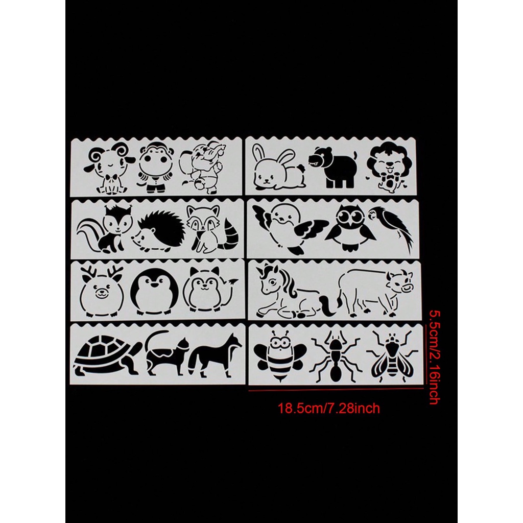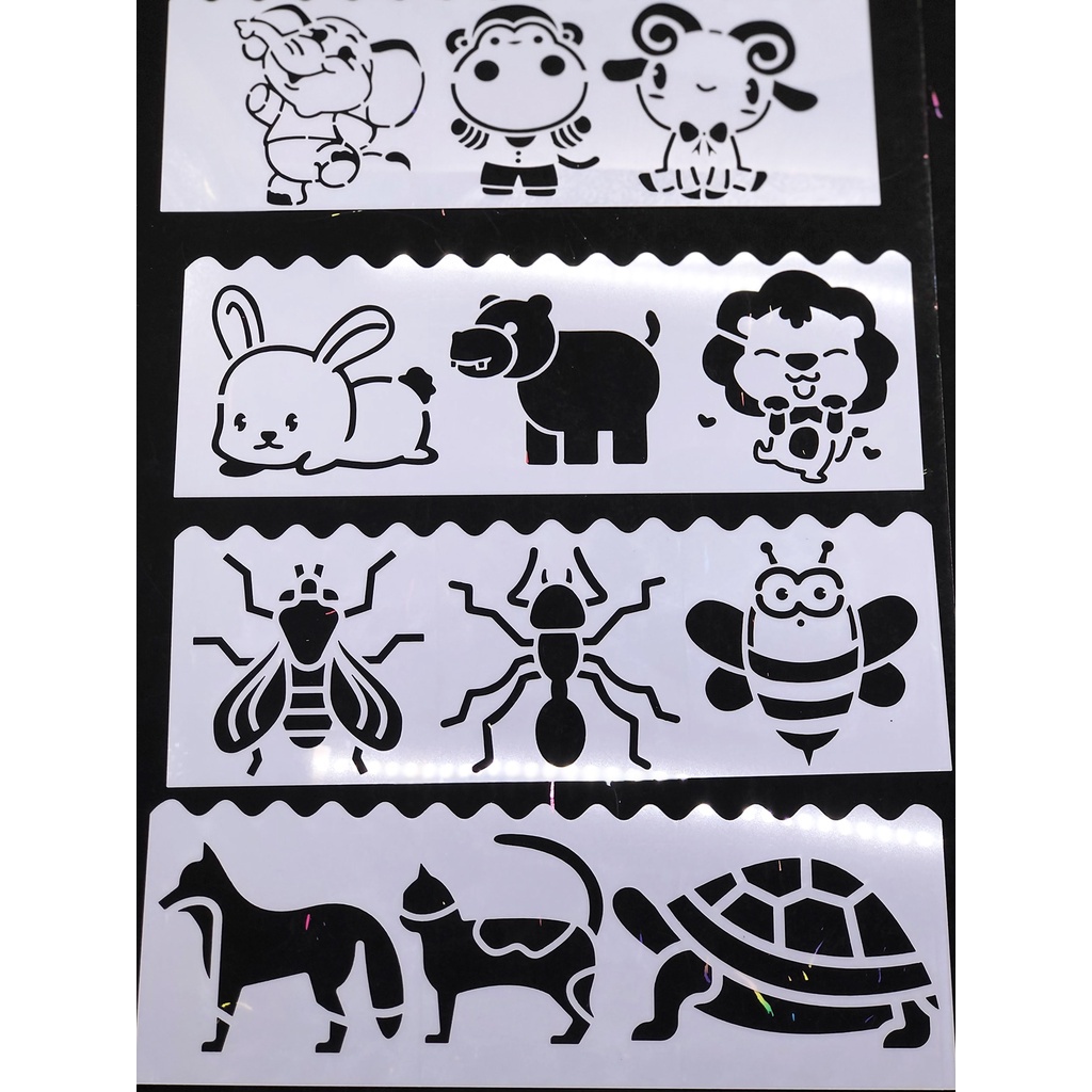Kit 8 stencil barrinhas molde pintura Estêncil tecido infantil animais bichinhos insetos