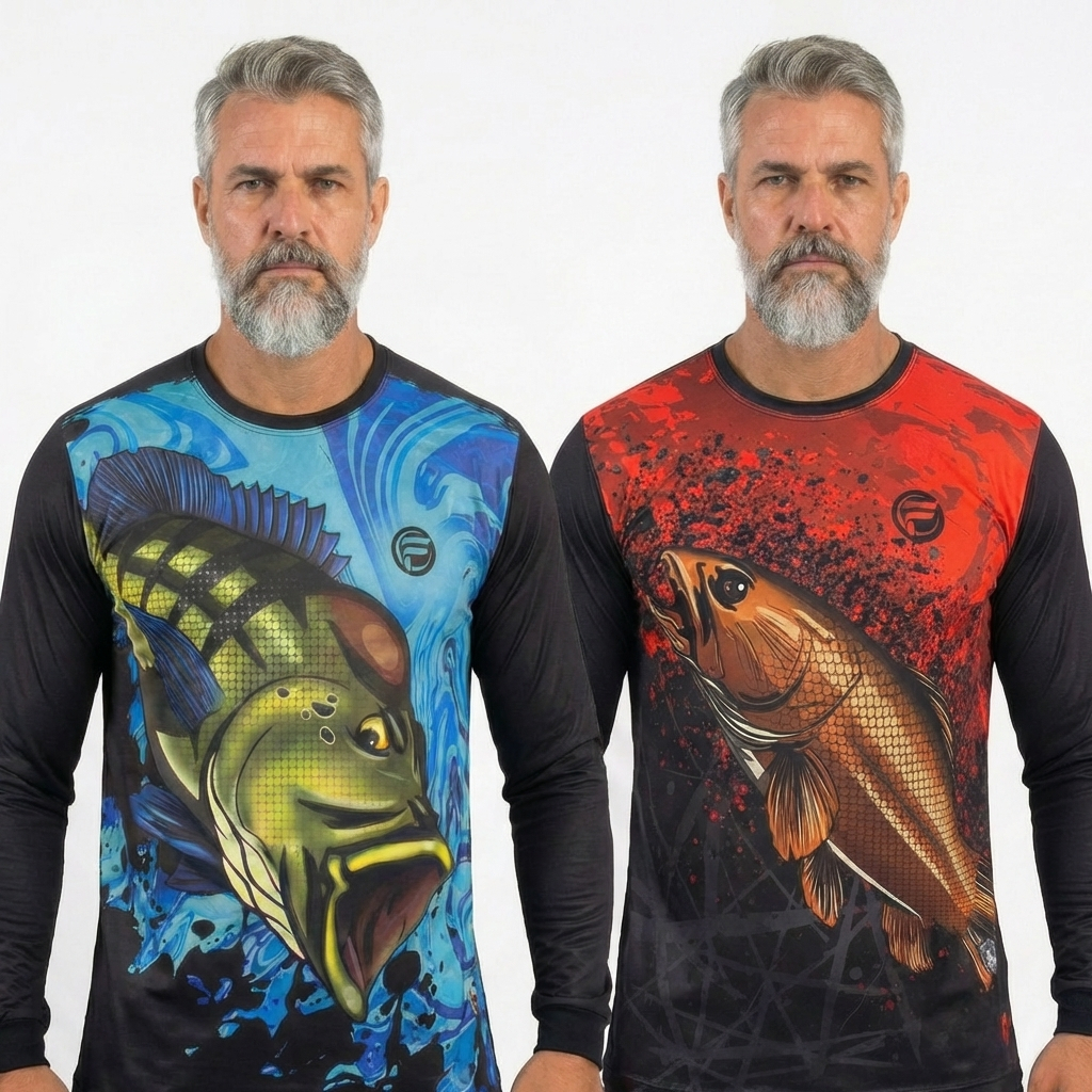 Kit 2 Camisa Camiseta Blusa de Pesca Com Proteção Solar Pescador Uv50 Tecido Dry fit Peixe