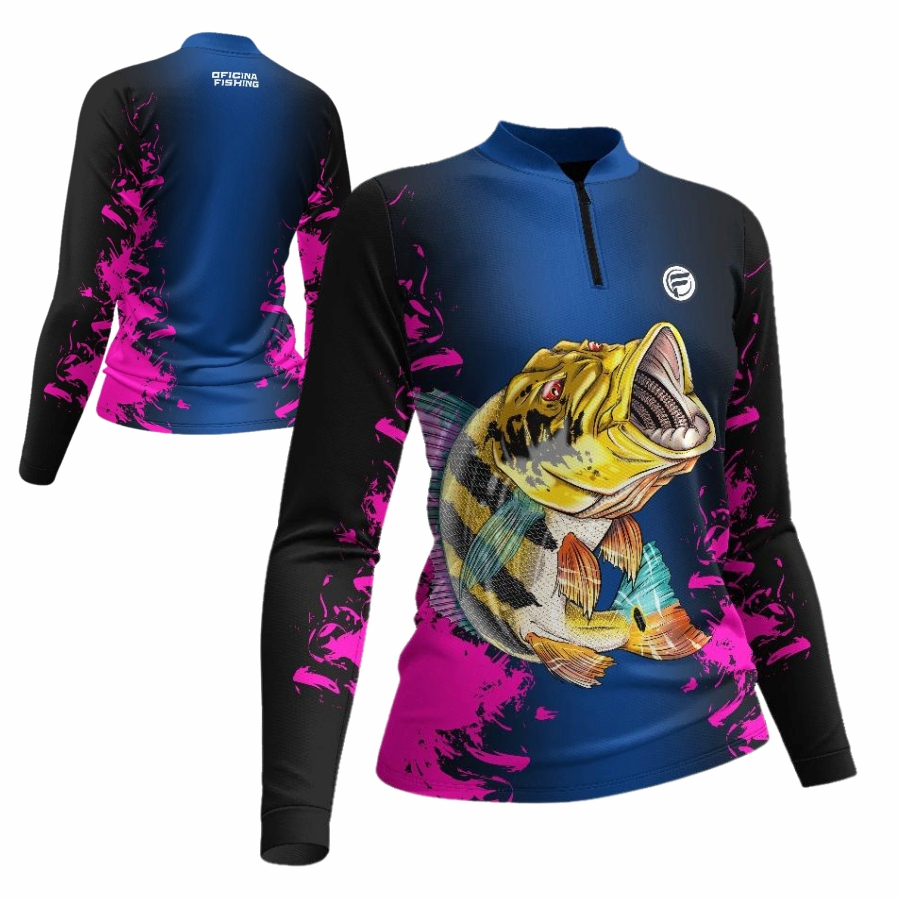 Camisa Camiseta de Pesca Feminina Tucunare Rosa Pirarara Blusa Manga Longa Novo Modelo Pescaria UV