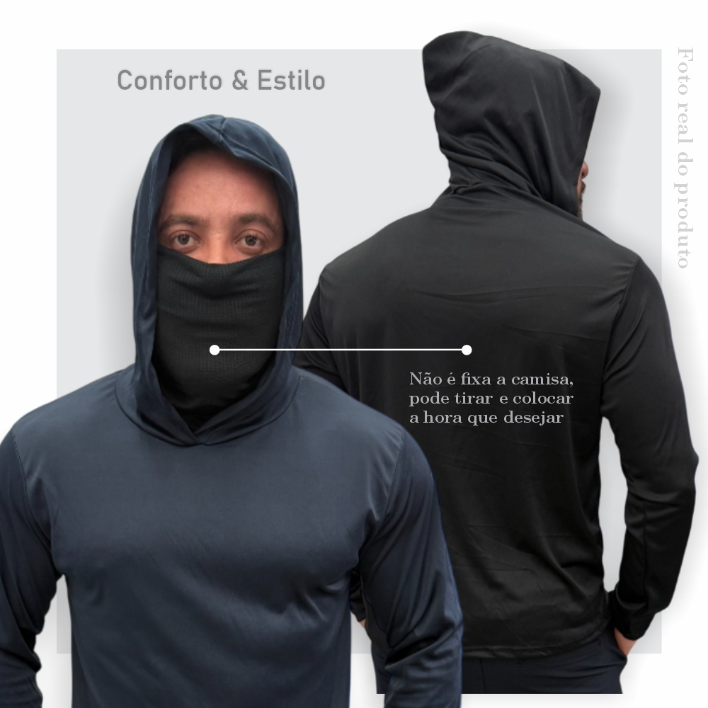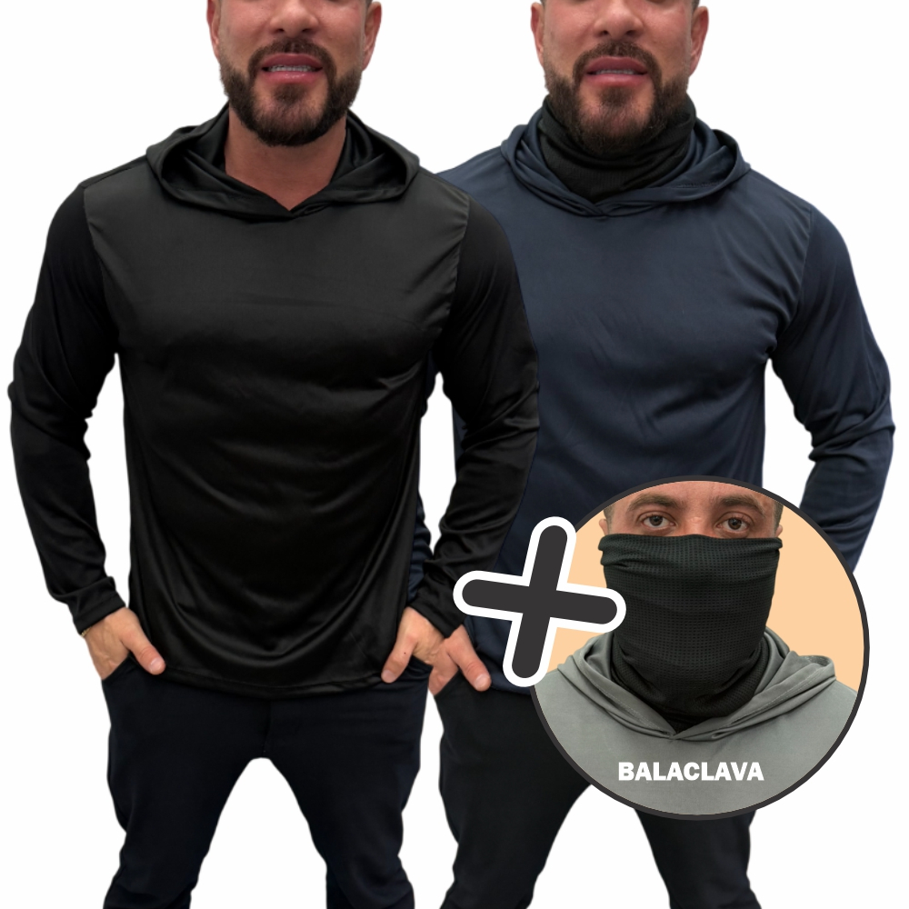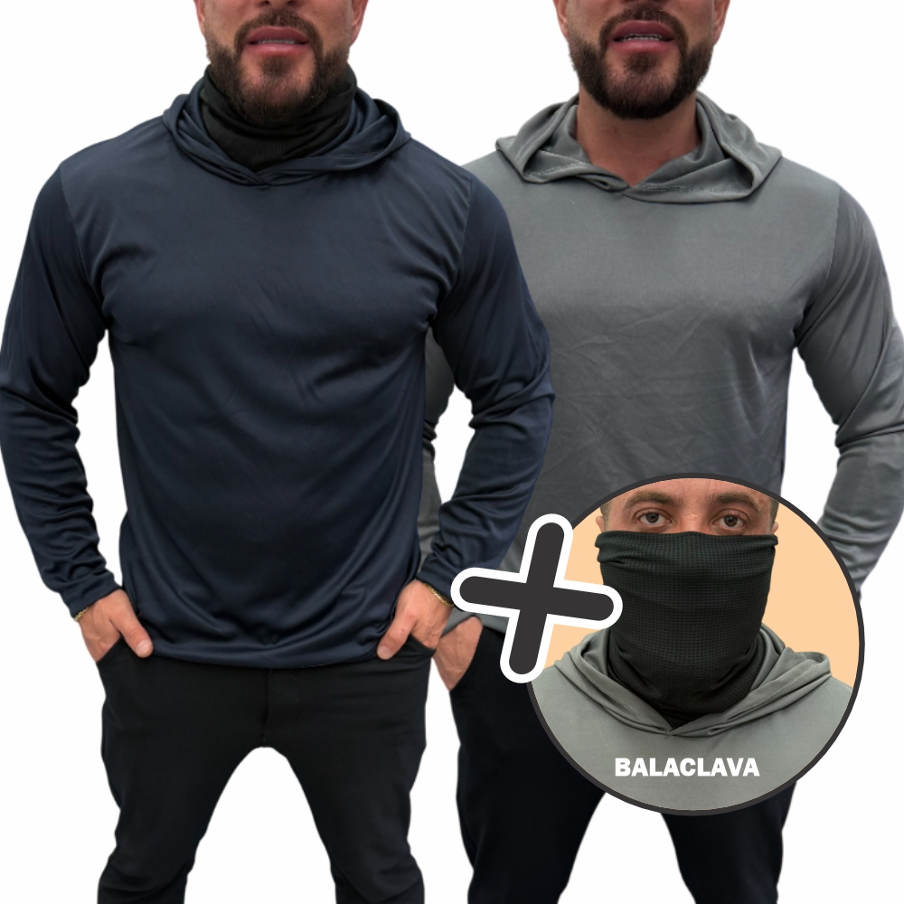 KIT 2 Camisa Dryfit c/ Capuz Térmica + Balaclava Proteção Uv50+ Camiseta Touca Manga Longa Masculina