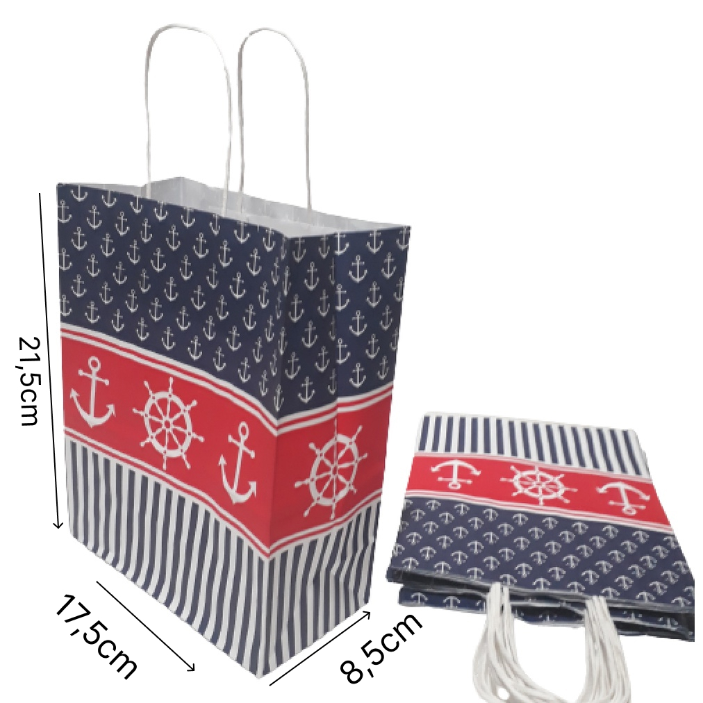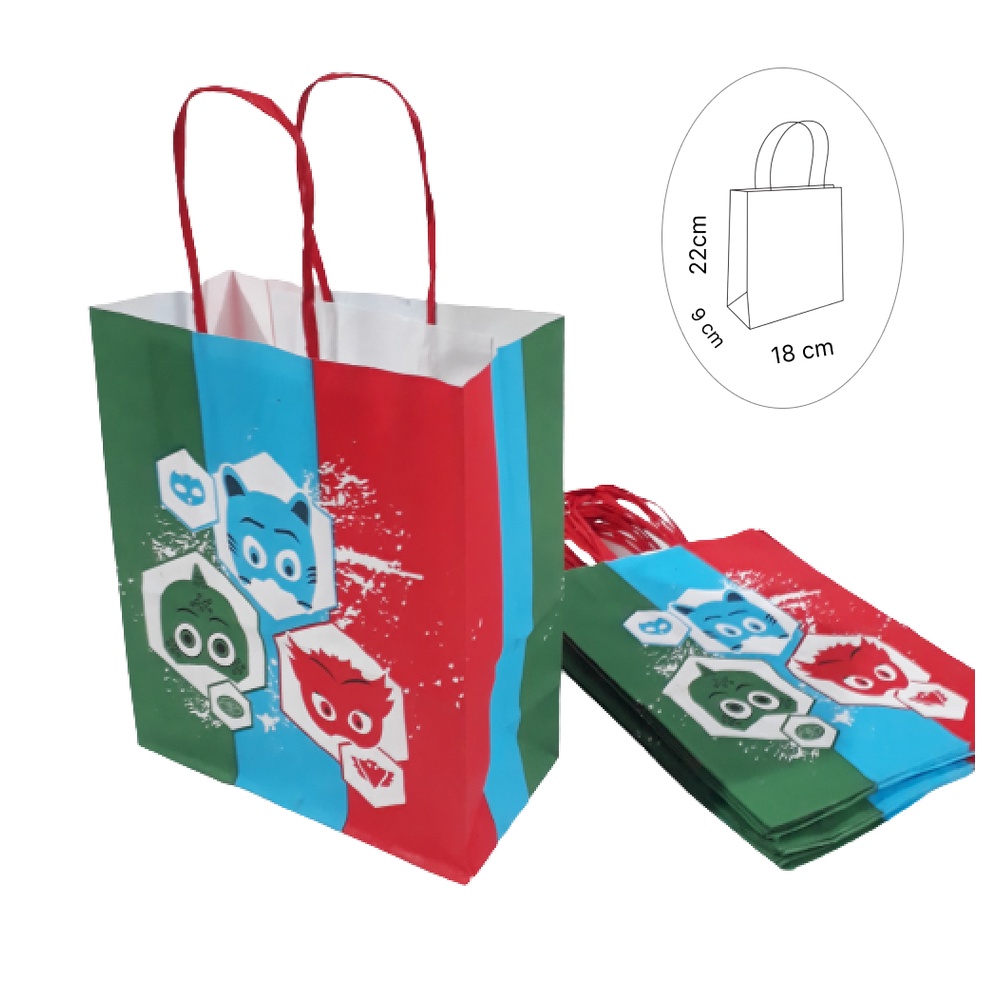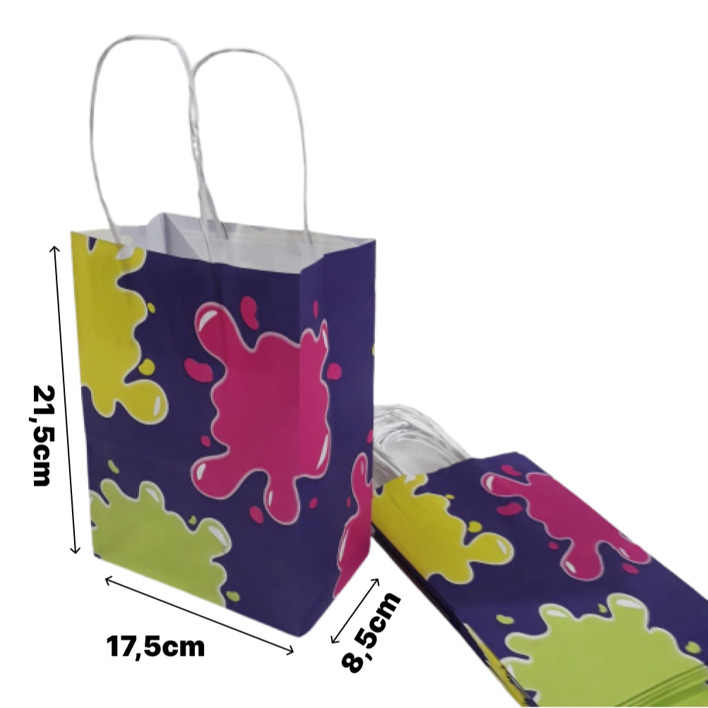 Sacolas Coloridas de papel - Pacote com 10 Unidades - com alça de cordão 18cmx9cmx22cm