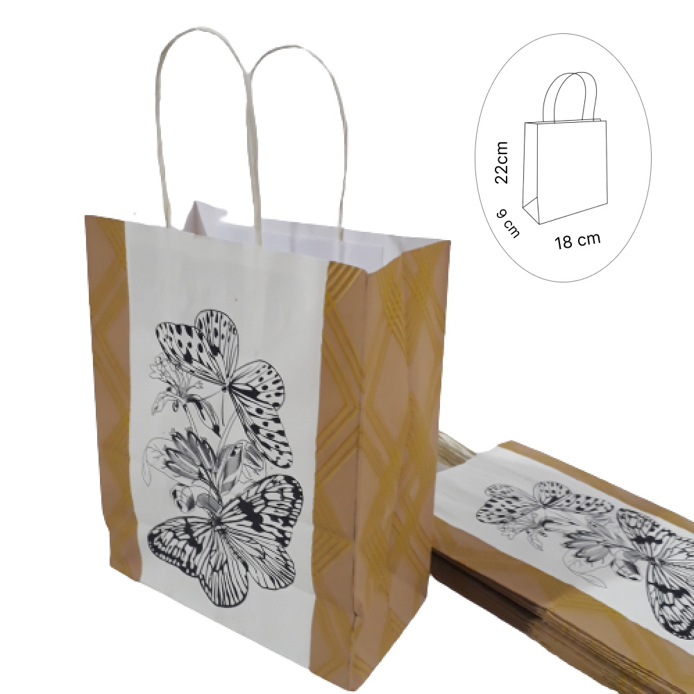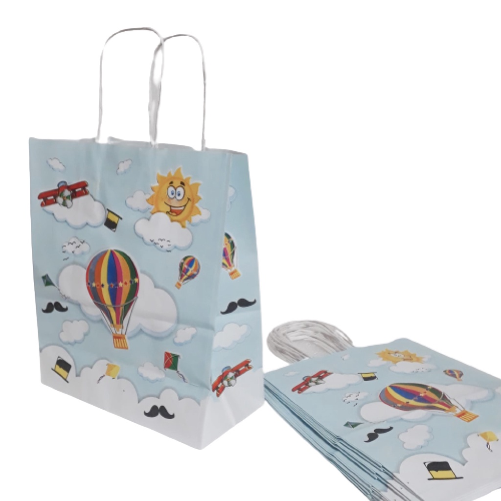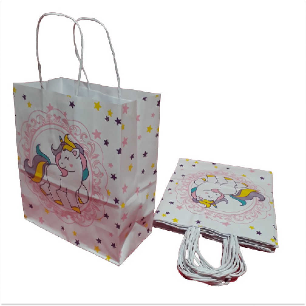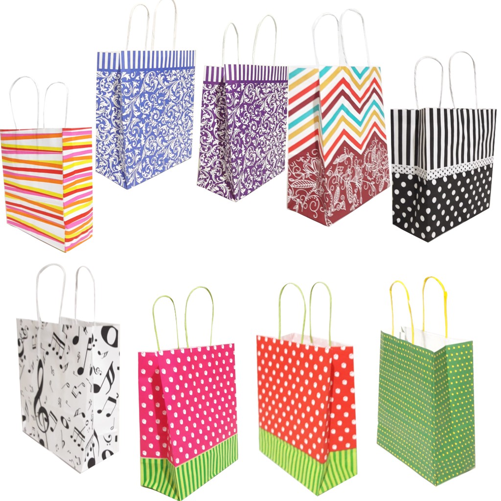 Sacolas Coloridas de papel - Pacote com 10 Unidades - com alça de cordão 18cmx9cmx22cm