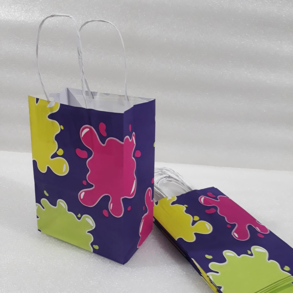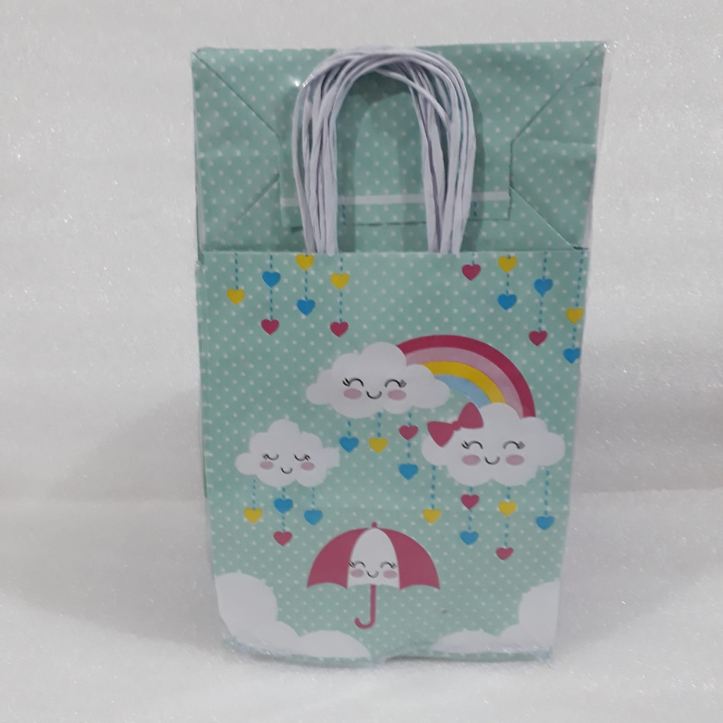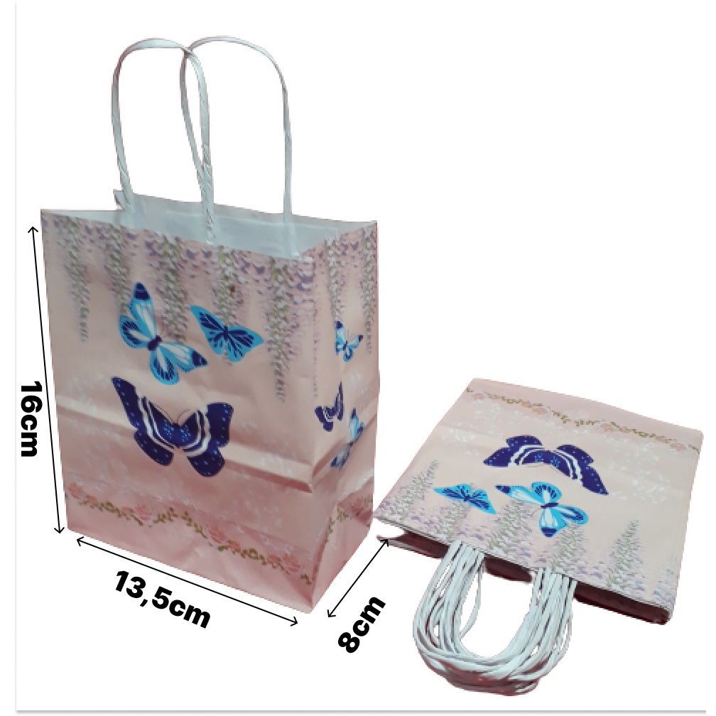 Sacolas Coloridas de papel - pequena - Pacote com 10 Unidades - com alça de cordão 14cmx8cmx16cm