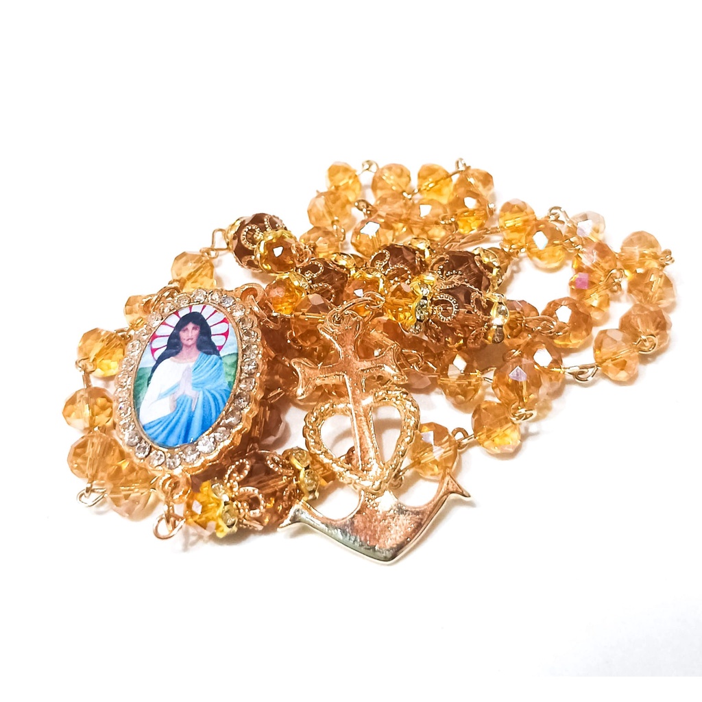 Terço Santa Sara De Kali cristal Dourado Cruz De Camarge-cigana