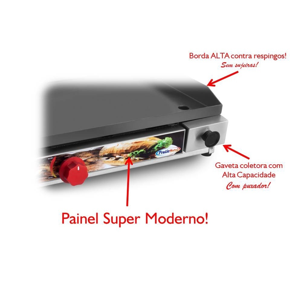 Chapa Chapeira De Lanches Porções Hamburguer Hot Dog 70x30 Premium Borda Alta