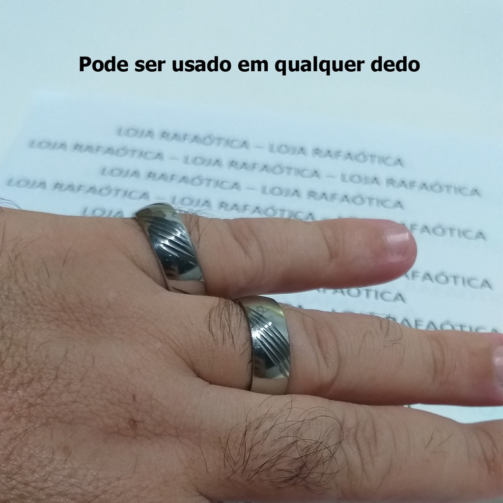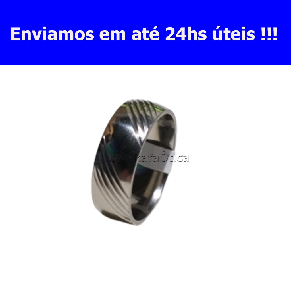Anel Aliança de Aço Inoxidável Cor Prata Unissex Com Detalhe