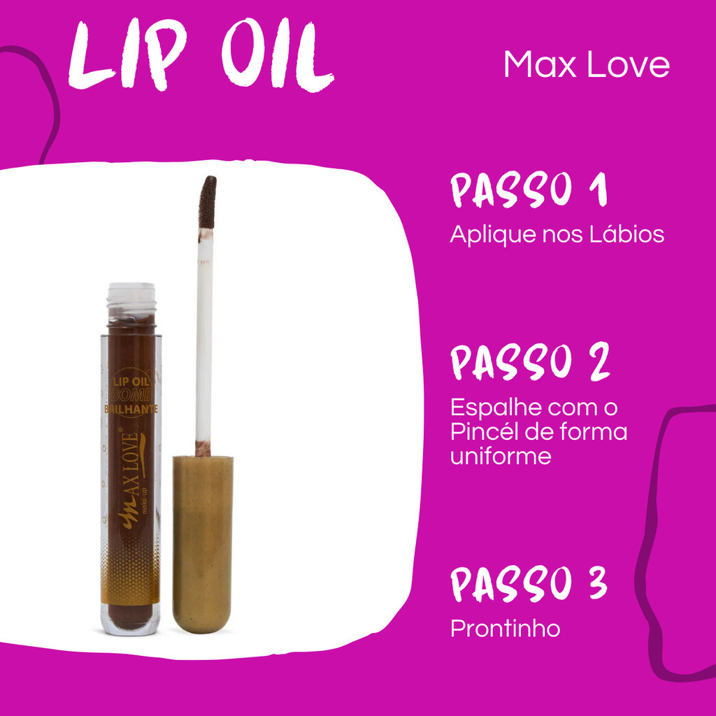 Lip Gloss Labial Lip Oil Bomb Brilhante Marrom Max Love 50
