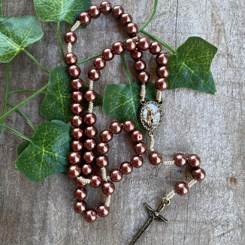 Terço São Miguel Arcanjo Quaresma Cruz Bronze Medalha Resinada
