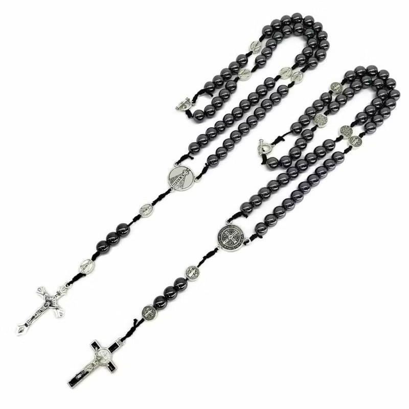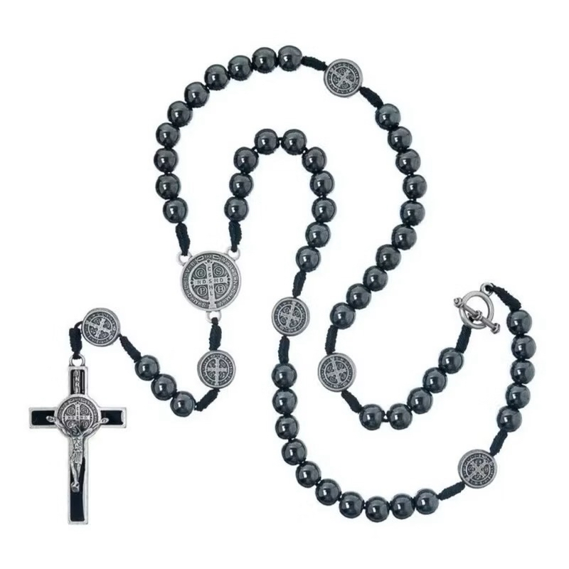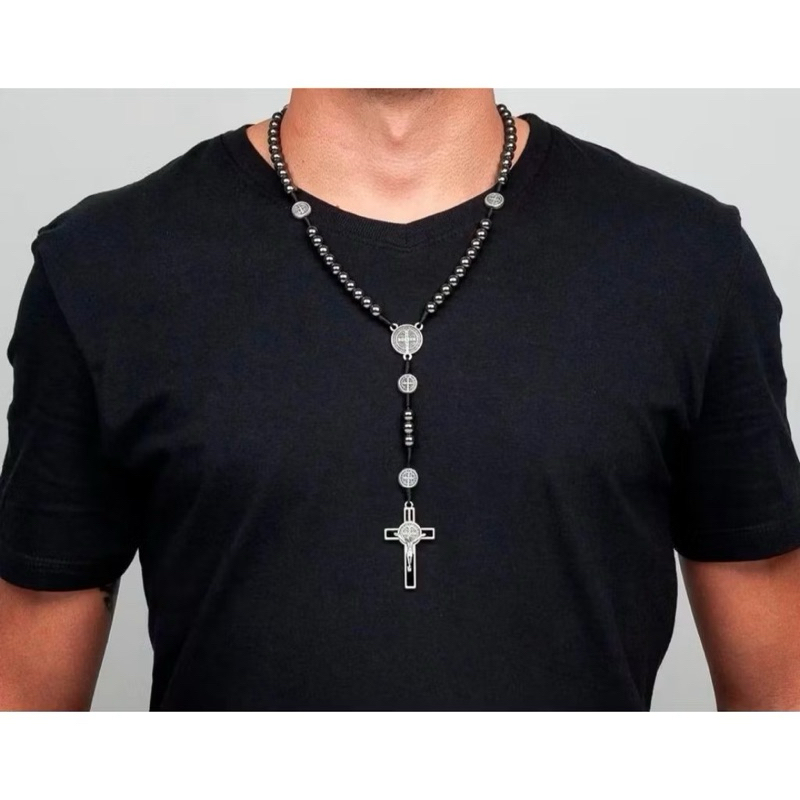 Terço Pedra Hematita Colar Pescoço Ajustável Nossa Senhora São Bento Terço Católico