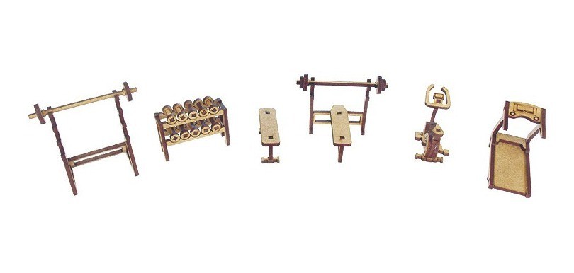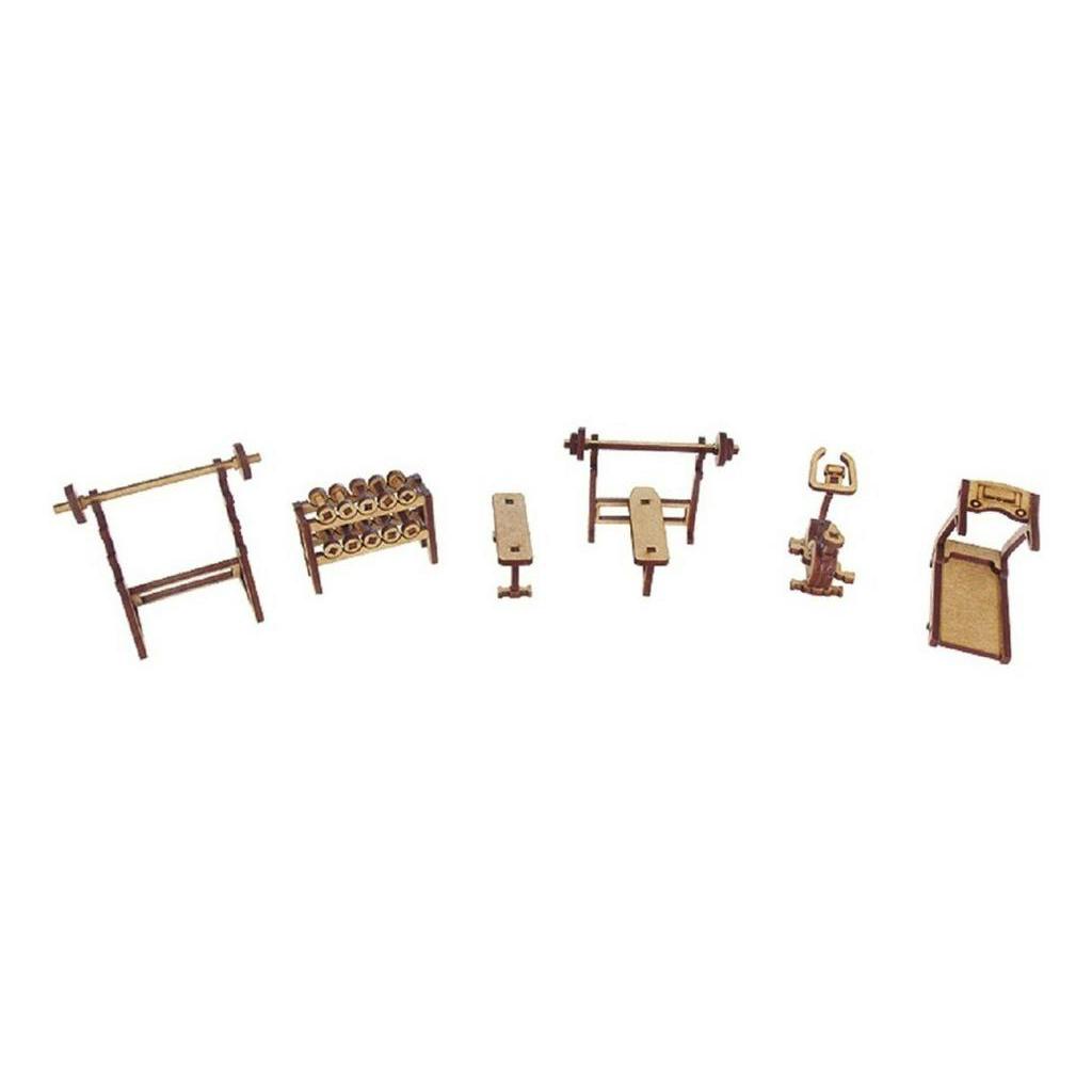 Kit Miniatura Academia 6 Pecas Supino Halteres Esteira Mdf