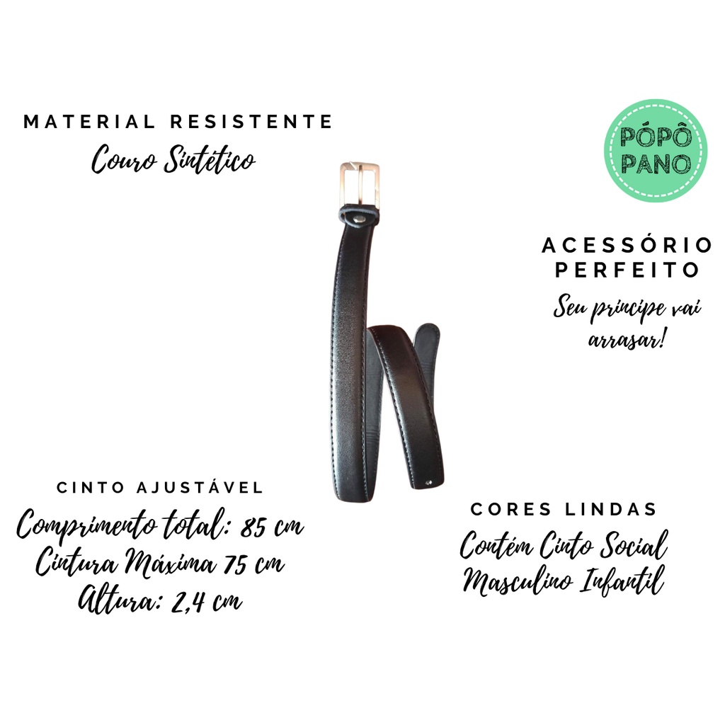 Cinto de Couro Social Masculino Infantil Com Regulagem