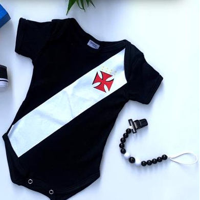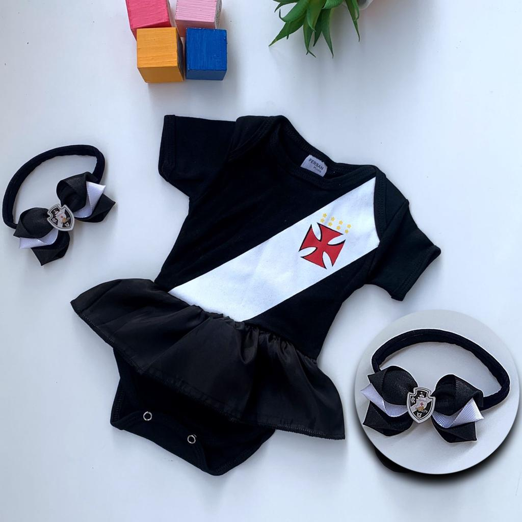 Kit 2 Peças Body do Vasco + Faixinha de Seda / Prendedor de Chupeta
