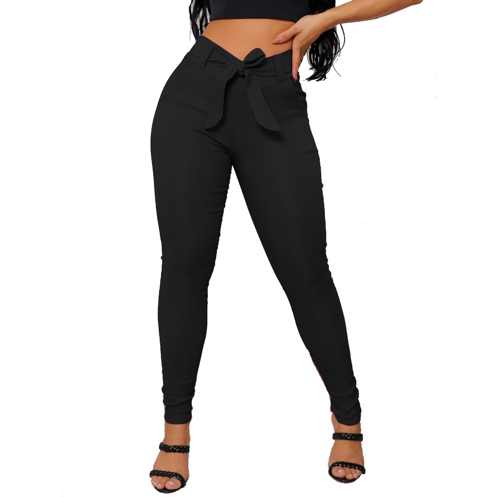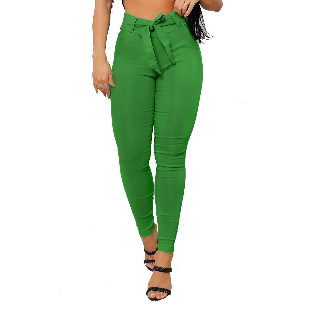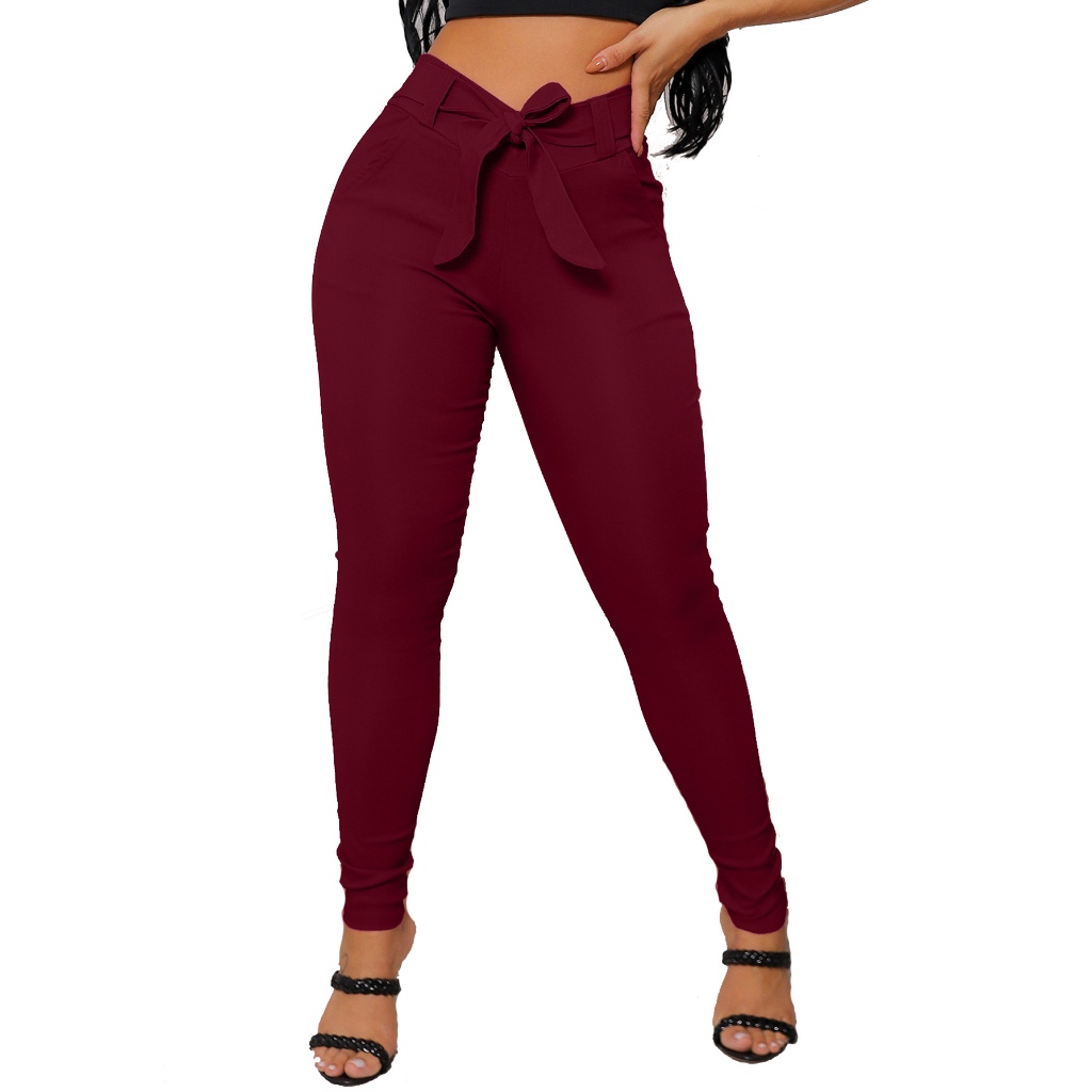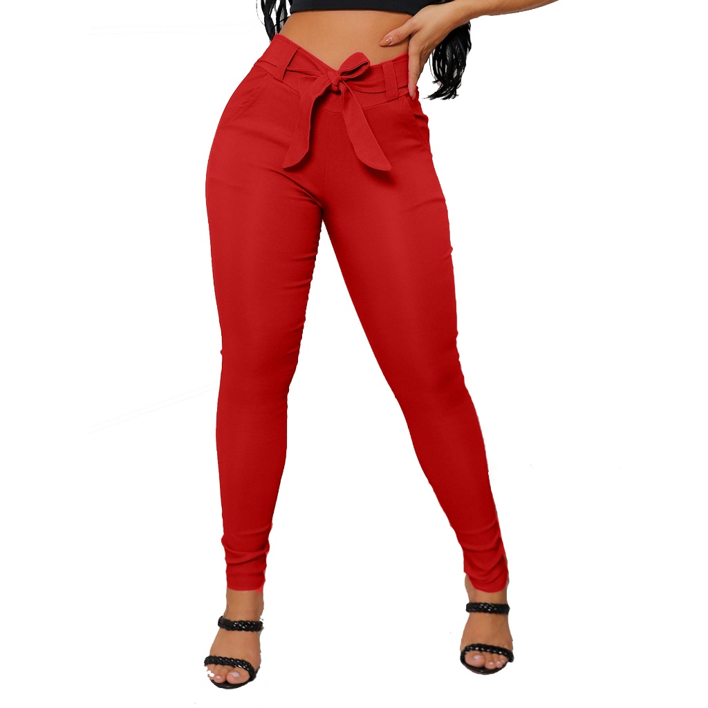 Calça Bengaline Cintura Alta Com Laço Sem Ziper