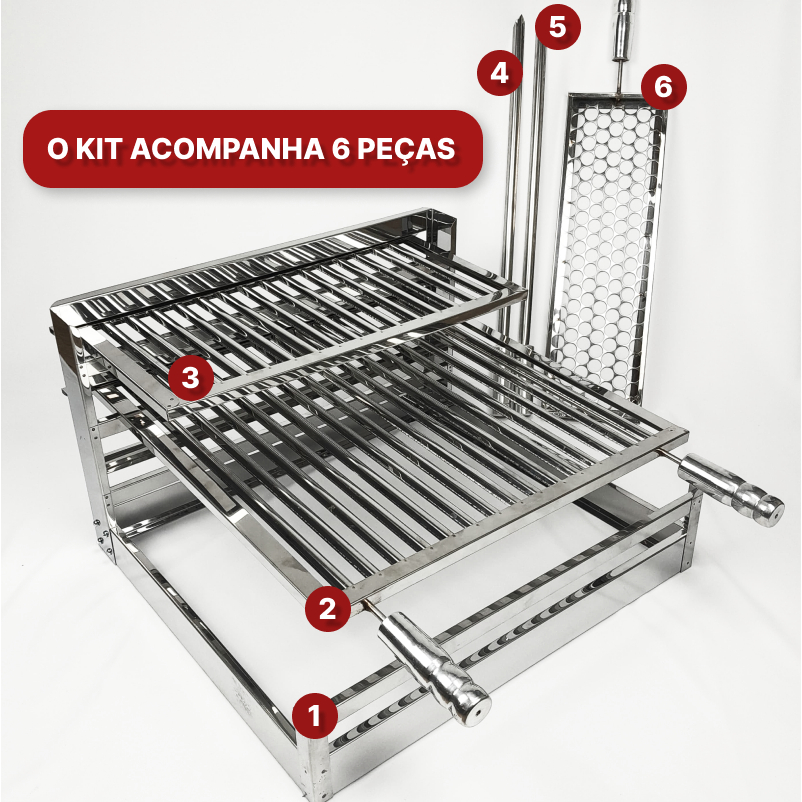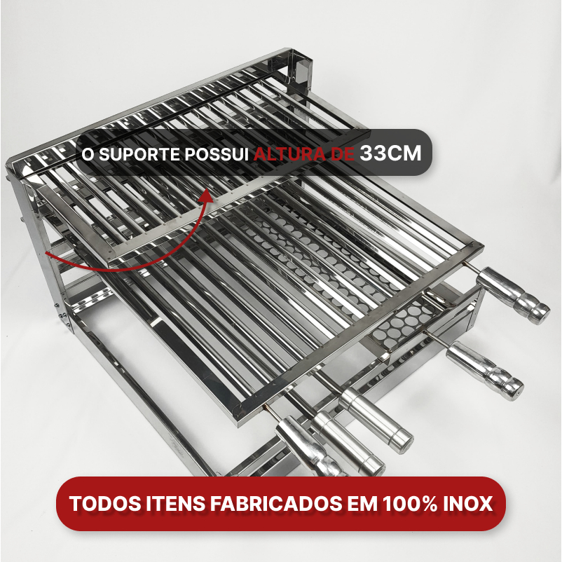 Suporte Grill Bancada Para Churrasqueira Kit Gourmet Completo Inox 6 Peças Premium