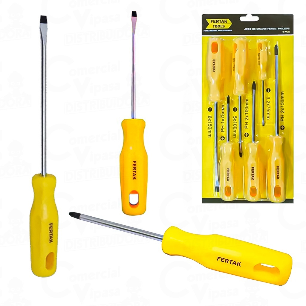 Kit Jogo de chave 6 Peças Fenda e Phillips Fertak