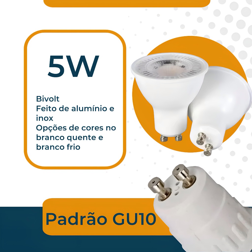 Kit 10 Lâmpada Led 5w Gu10 Dicroica Mr16 Spot Lustre Bivolt Branco Frio Branco Quente
