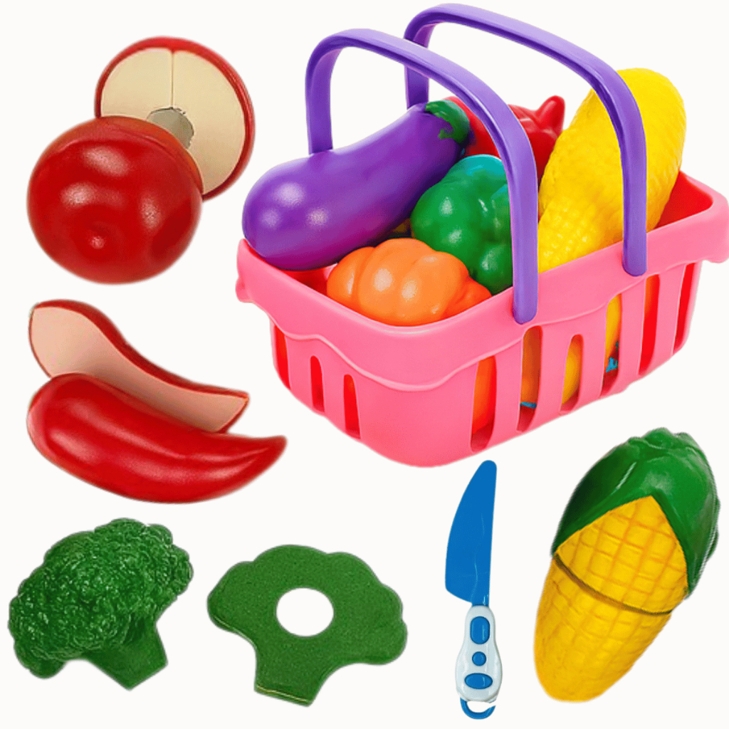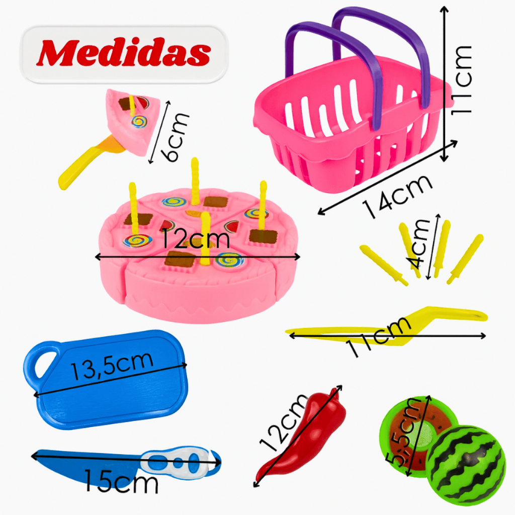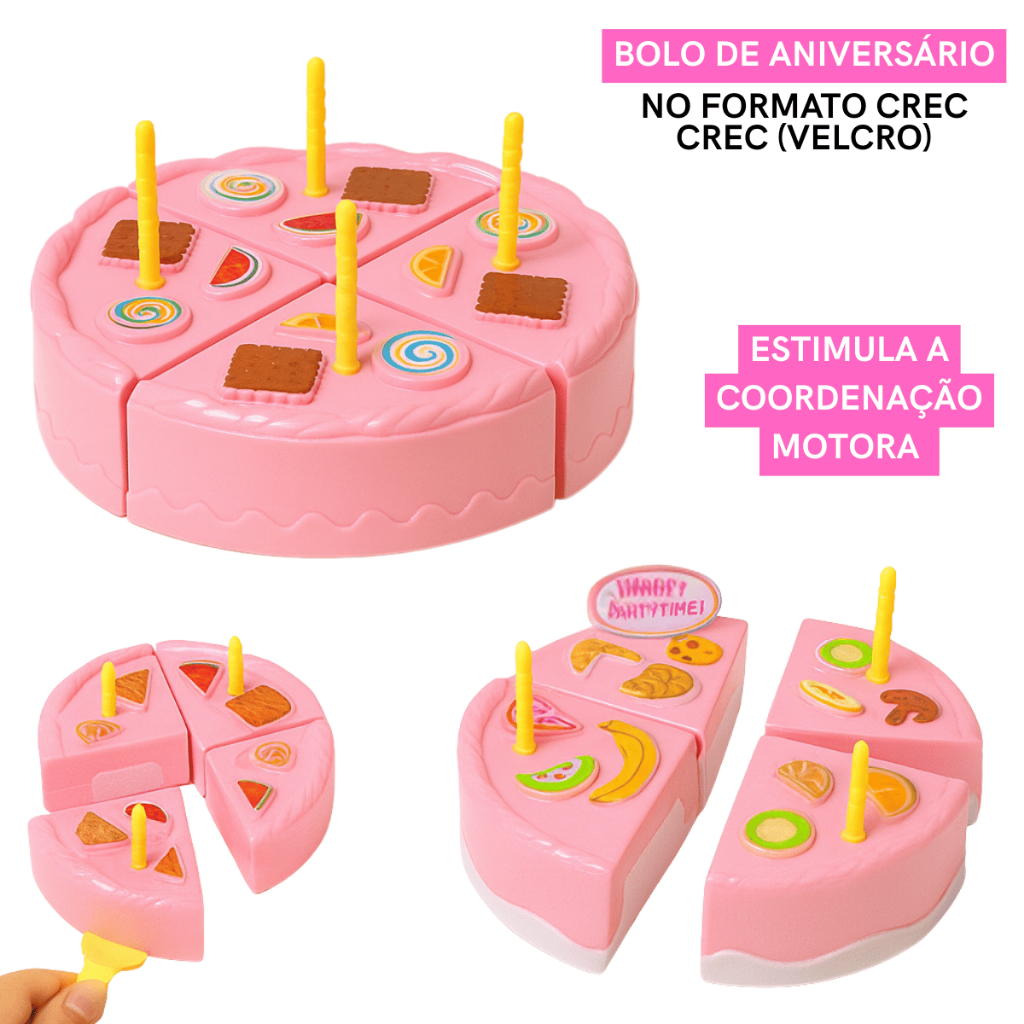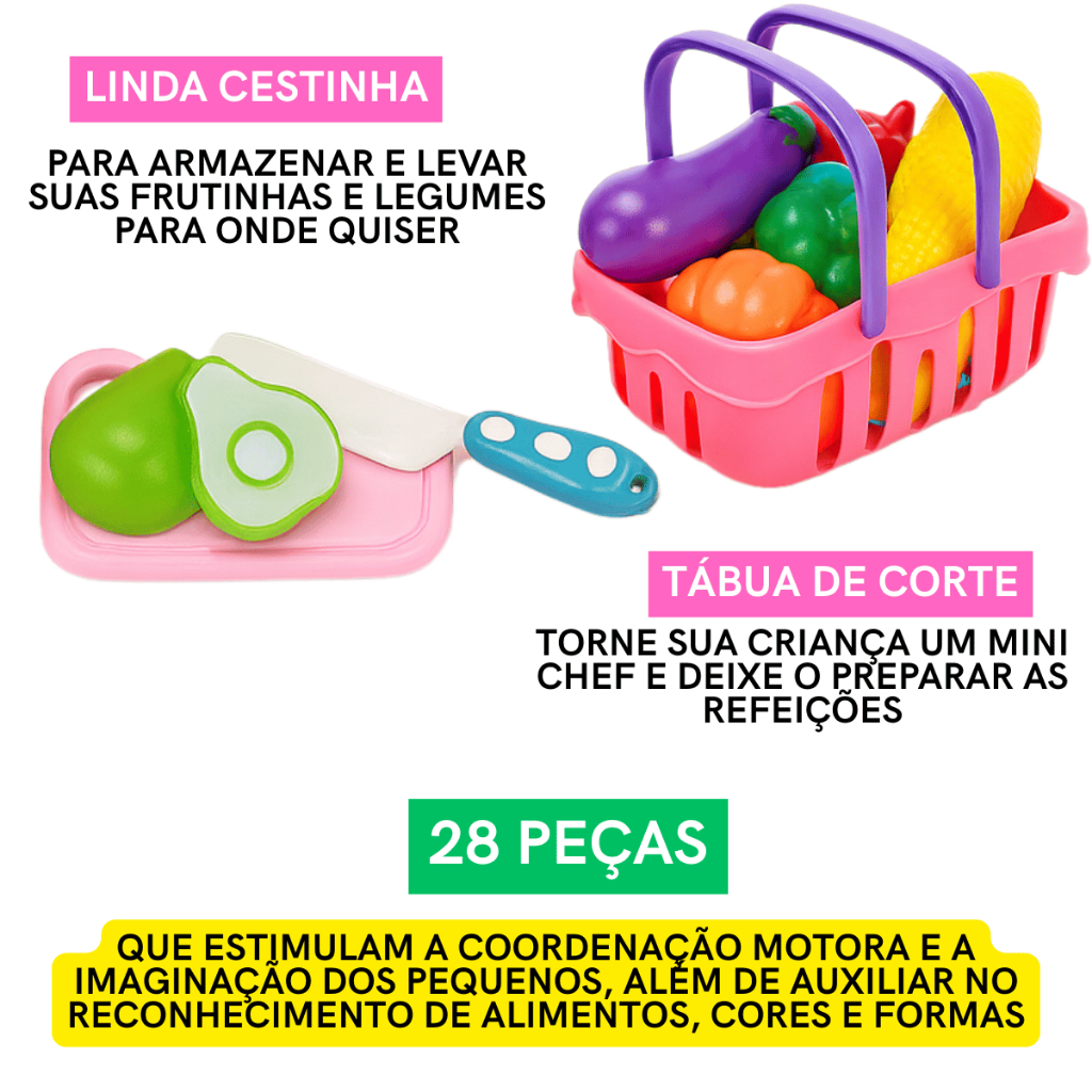Kit Comidinhas Frutas Legumes Velcro Crec Crec 28 Peças Brinquedo Infantil Menina Cozinha Bolo