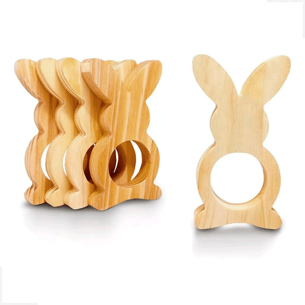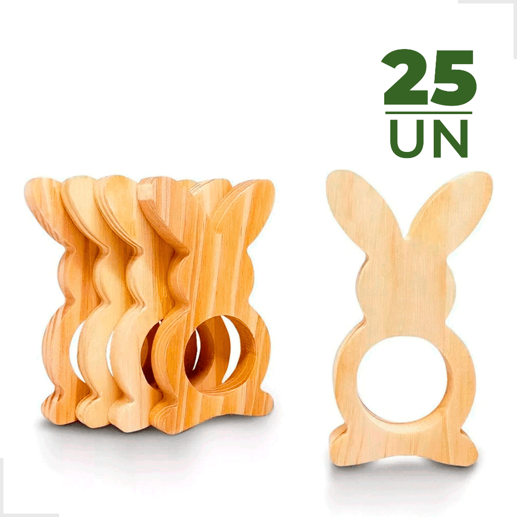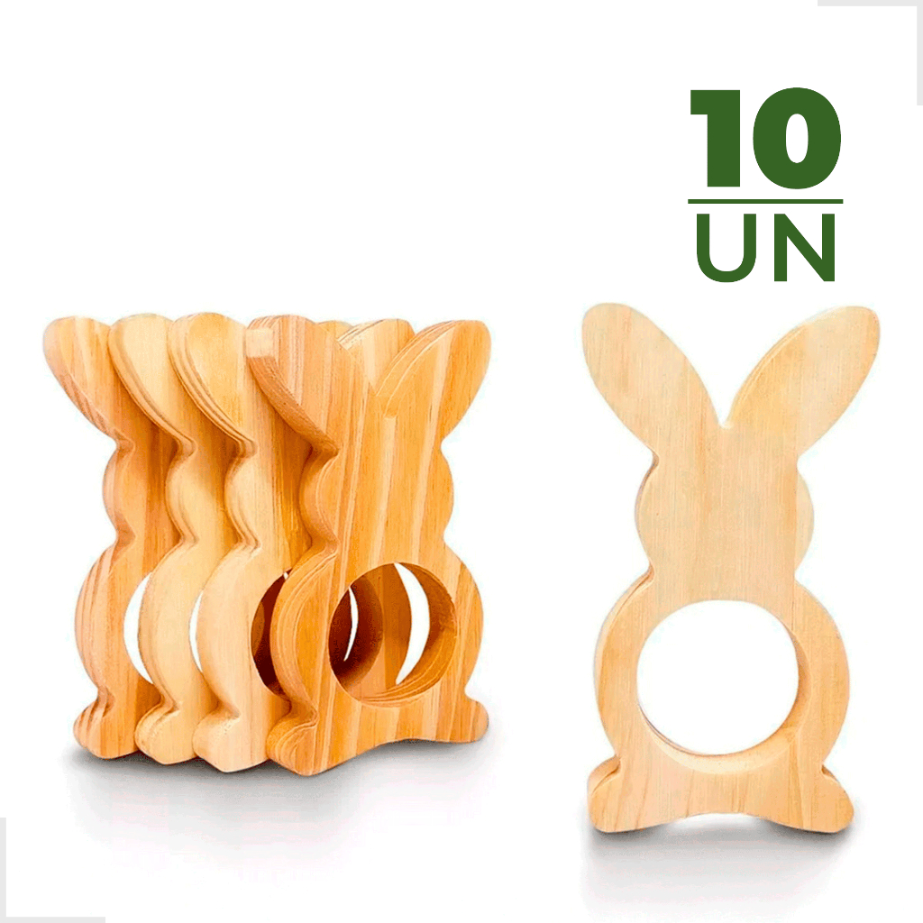 Kit Argola Porta Guardanapo Coelho Páscoa Tecido Decoração Enfeite Mesa Posta Anel Madeira Pinus