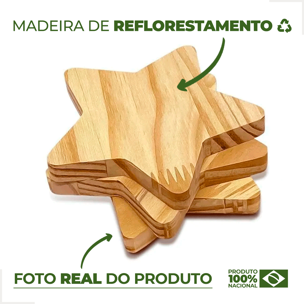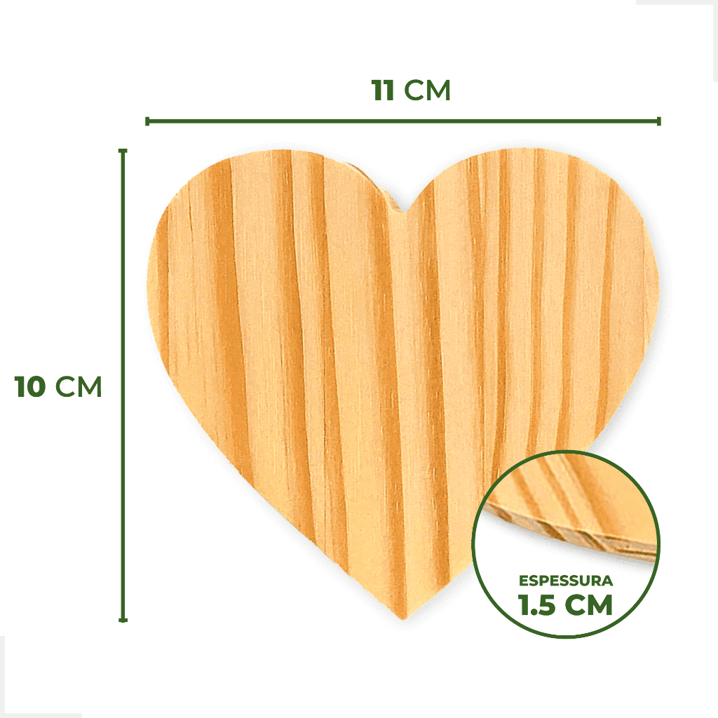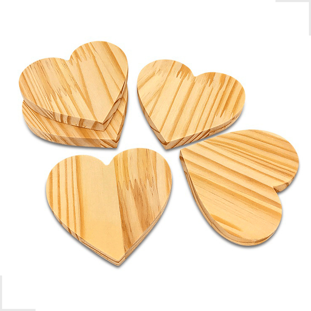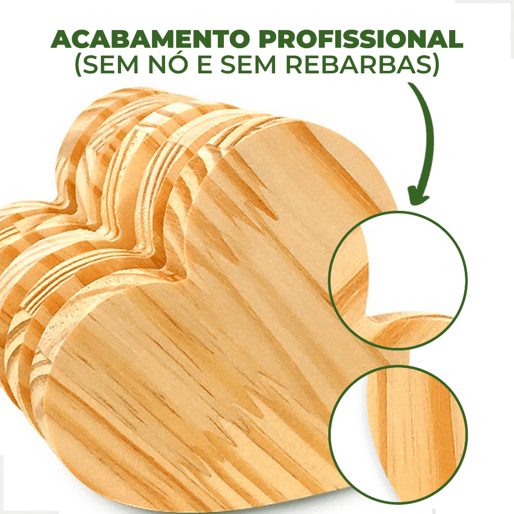 Kit 10 Porta Copos Madeira de Pinus Coração Redondo Quadrado Bolacha Mesa Posta Decoração Artesanato