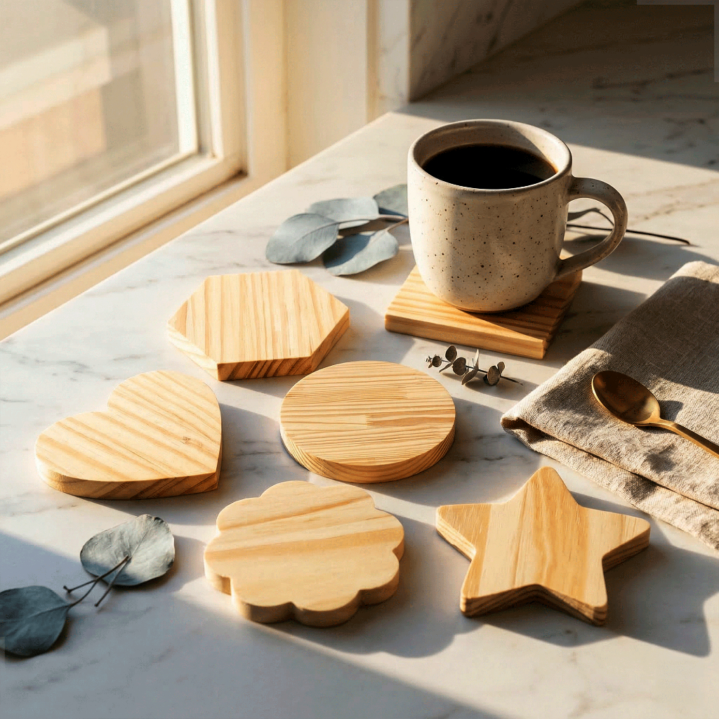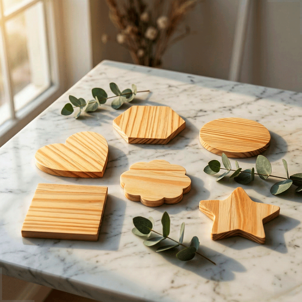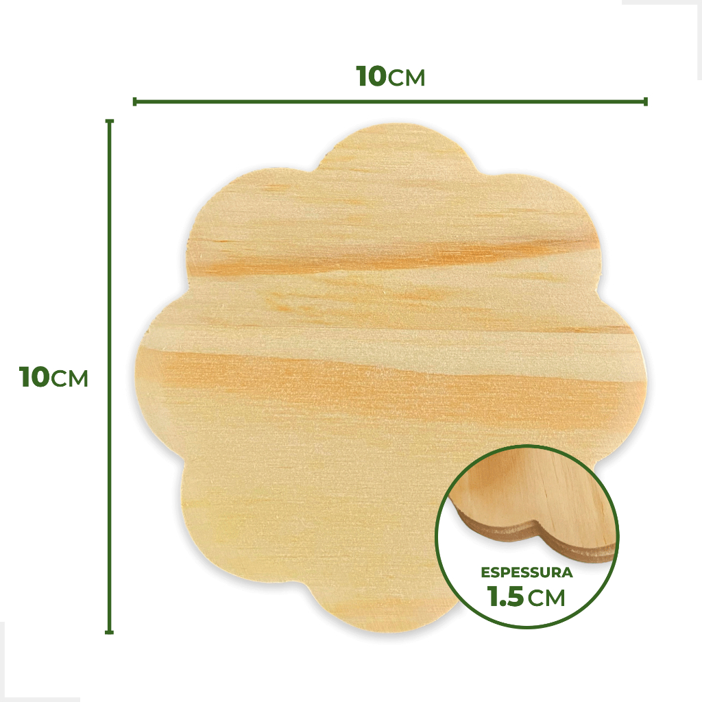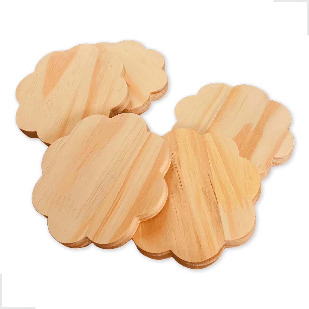 Kit 10 Porta Copos Madeira de Pinus Coração Redondo Quadrado Bolacha Mesa Posta Decoração Artesanato