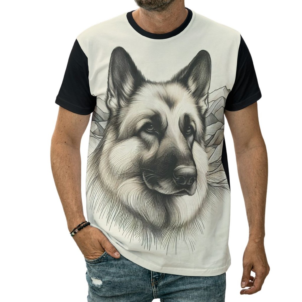Camiseta Lobo Nas Montanhas Animal Feroz Selvagem Desenho