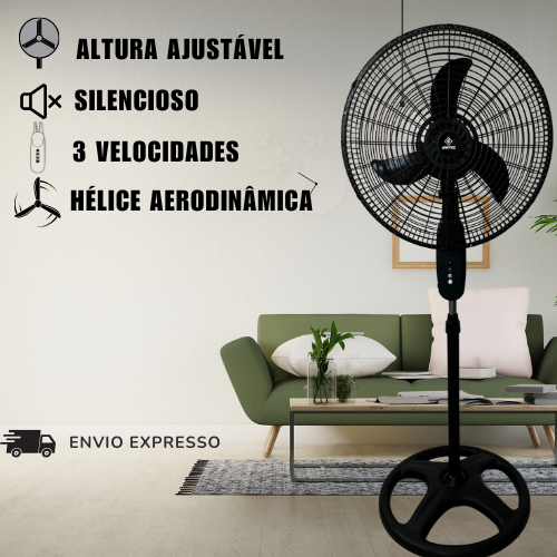 Ventilador Pedestal Coluna Ajustável 45cm 3 Velocidades 127V-220V Bivolt+Garra 12V
