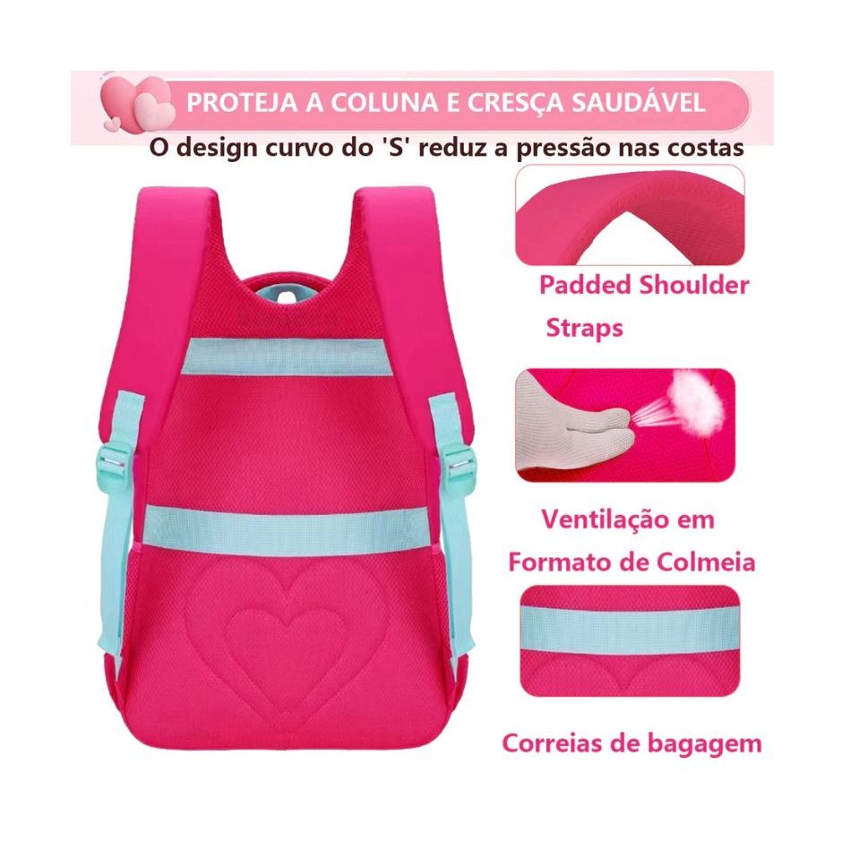 Mochila Feminina Escolar Universitária Impermeável Grande Capacidade Moda Casual Coração Corrente