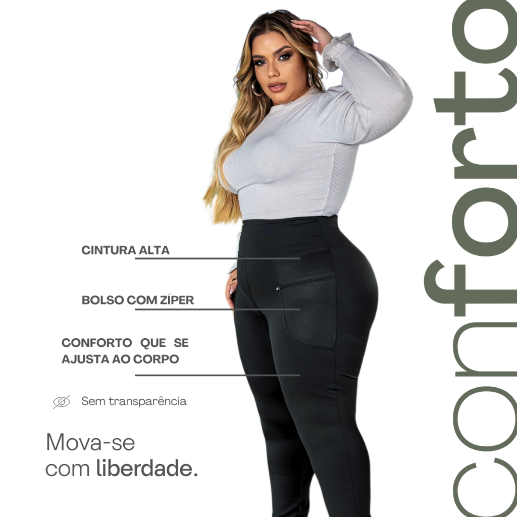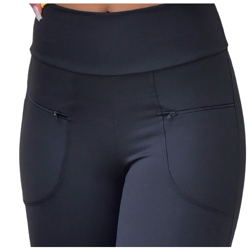 Calça Feminina Legging Montaria M ao G4 Cós Alto Fitness Com Bolso e Zipper Leg Suplex Grosso