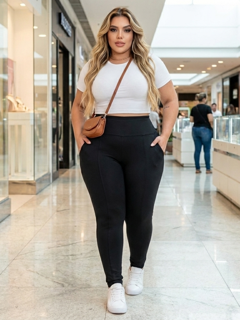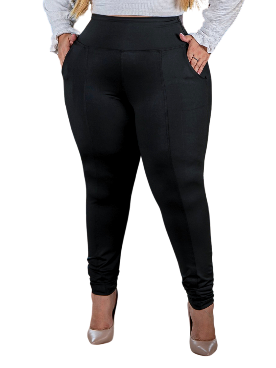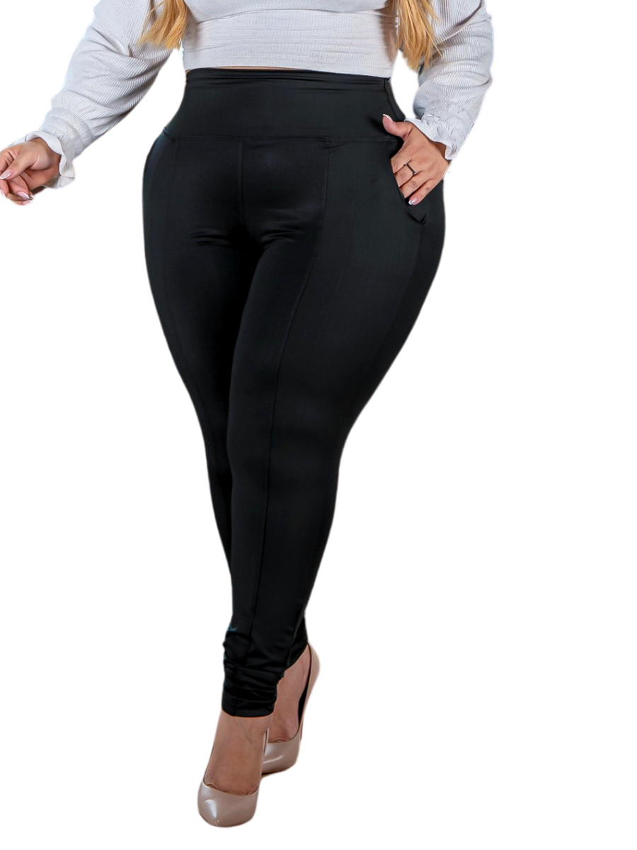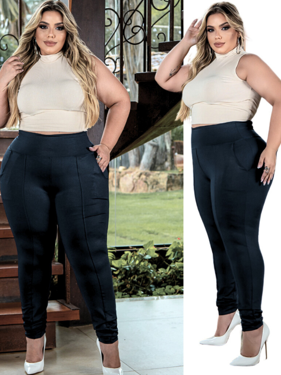 Legging Plus Size Com Bolso E Cós Alto Suplex Super Grossa Zero Transparência do 38 Até o 60