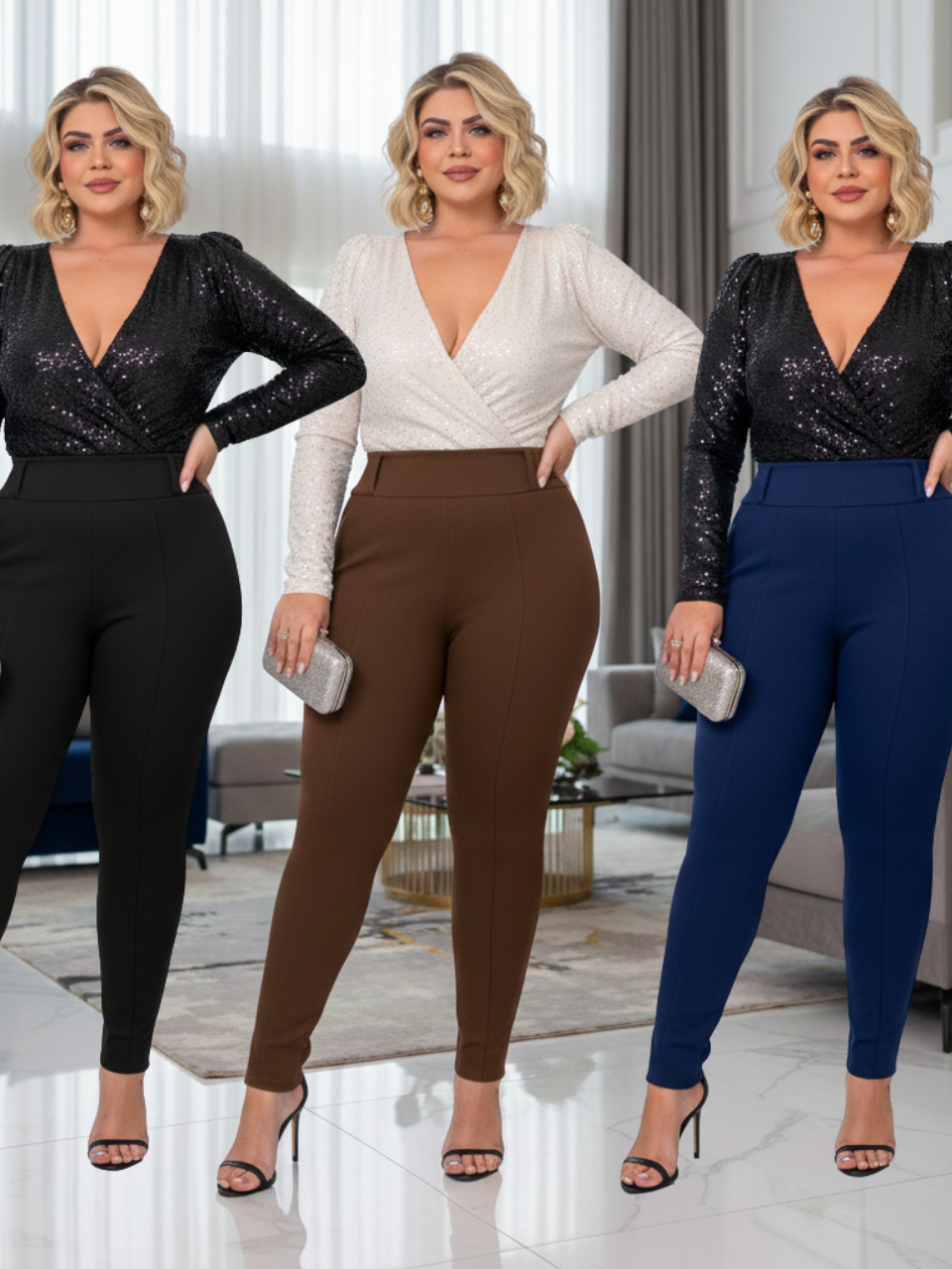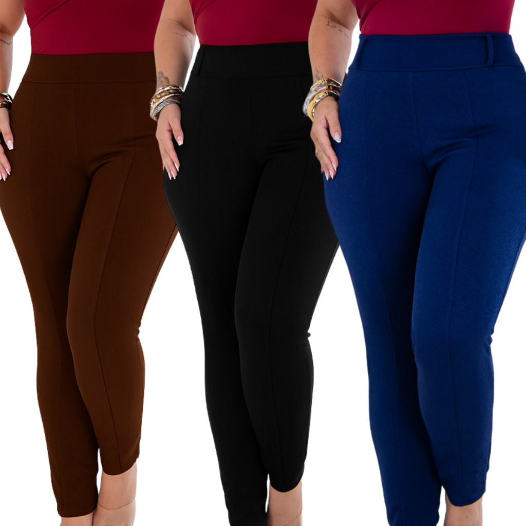 Kit 3 legging montaria feminina plus size casual elastano premium crepe de malha Zero Transparência confortável 44/54