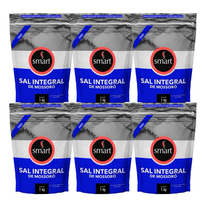 kit 6 Sal Marinho De Mossoró Fino Tempero 1kg Da Smart