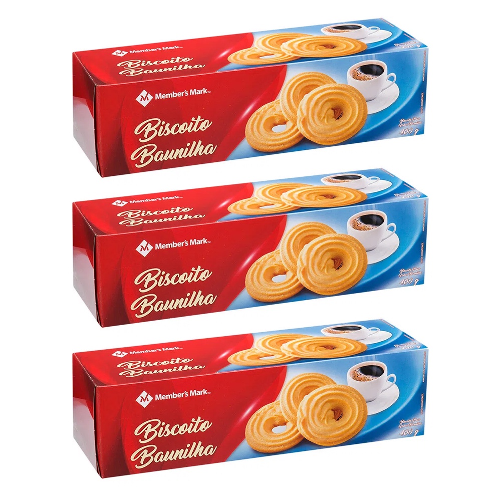 KIT 3 BISCOITO ALEMÂ DE BAUNILHA MEMBER'S MARK PACOTE 400G