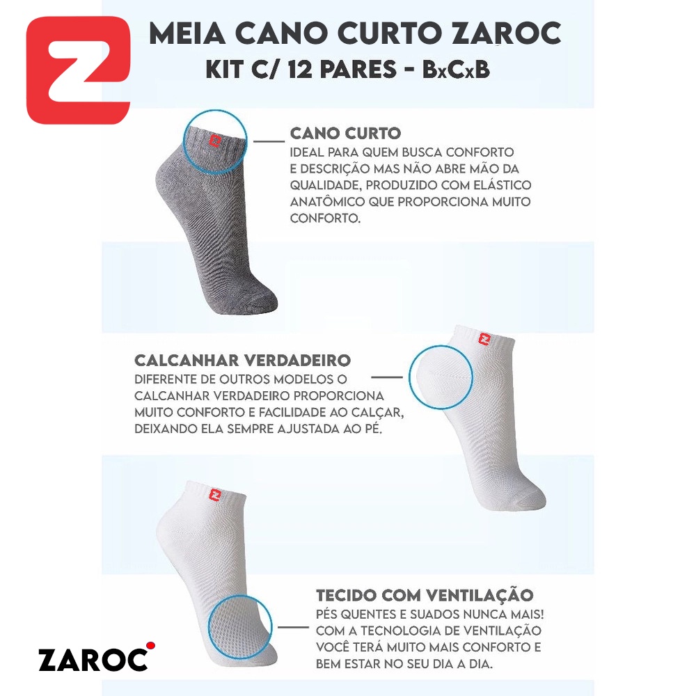 Kit 12 Pares Meia Zaroc Masculina Algodão