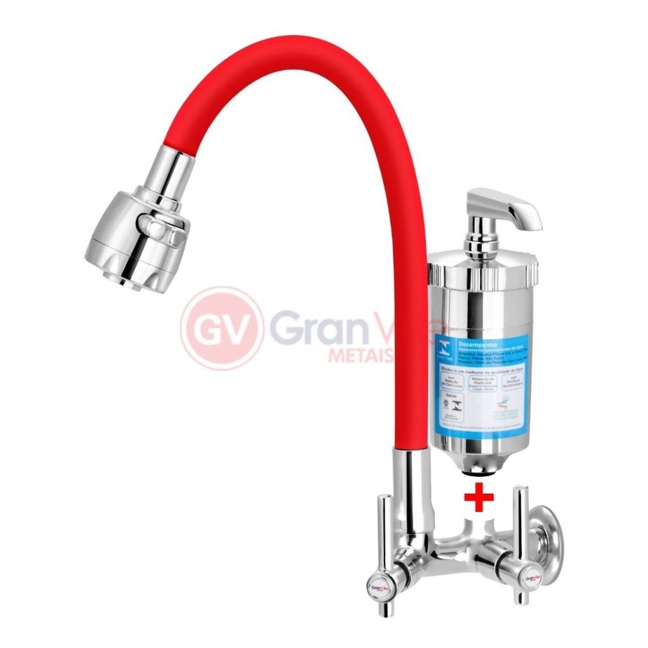 Torneira Bica Móvel Parede Gourmet Red 2 Jatos C80 P/ Filtro Favorito