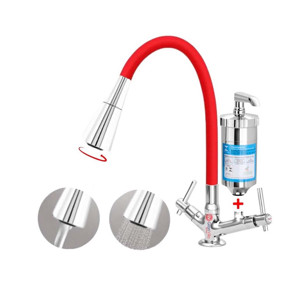 Torneira Gourmet Mesa Cone Vermelha P/filtro 2 Jatos