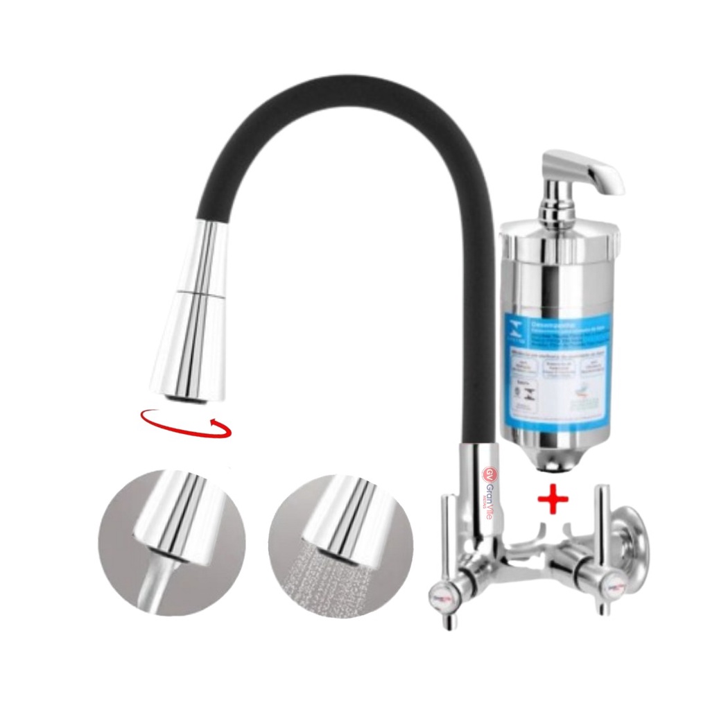 Torneira Gourmet Parede Cone Preto P/filtro 2 Jatos