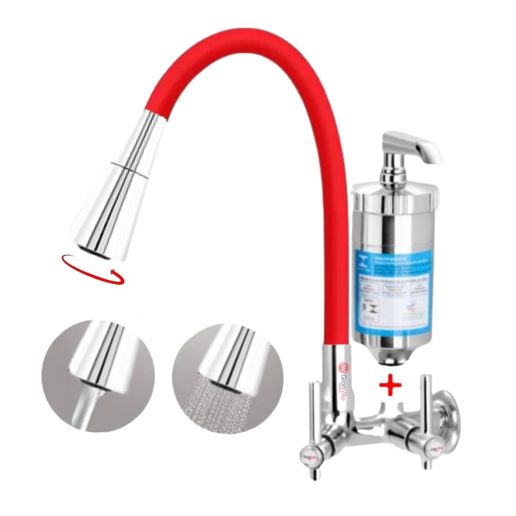 Torneira Gourmet Parede Cone Vermelha P/filtro 2jatos