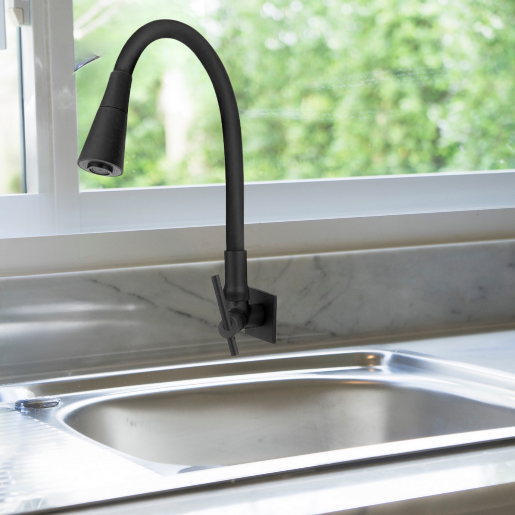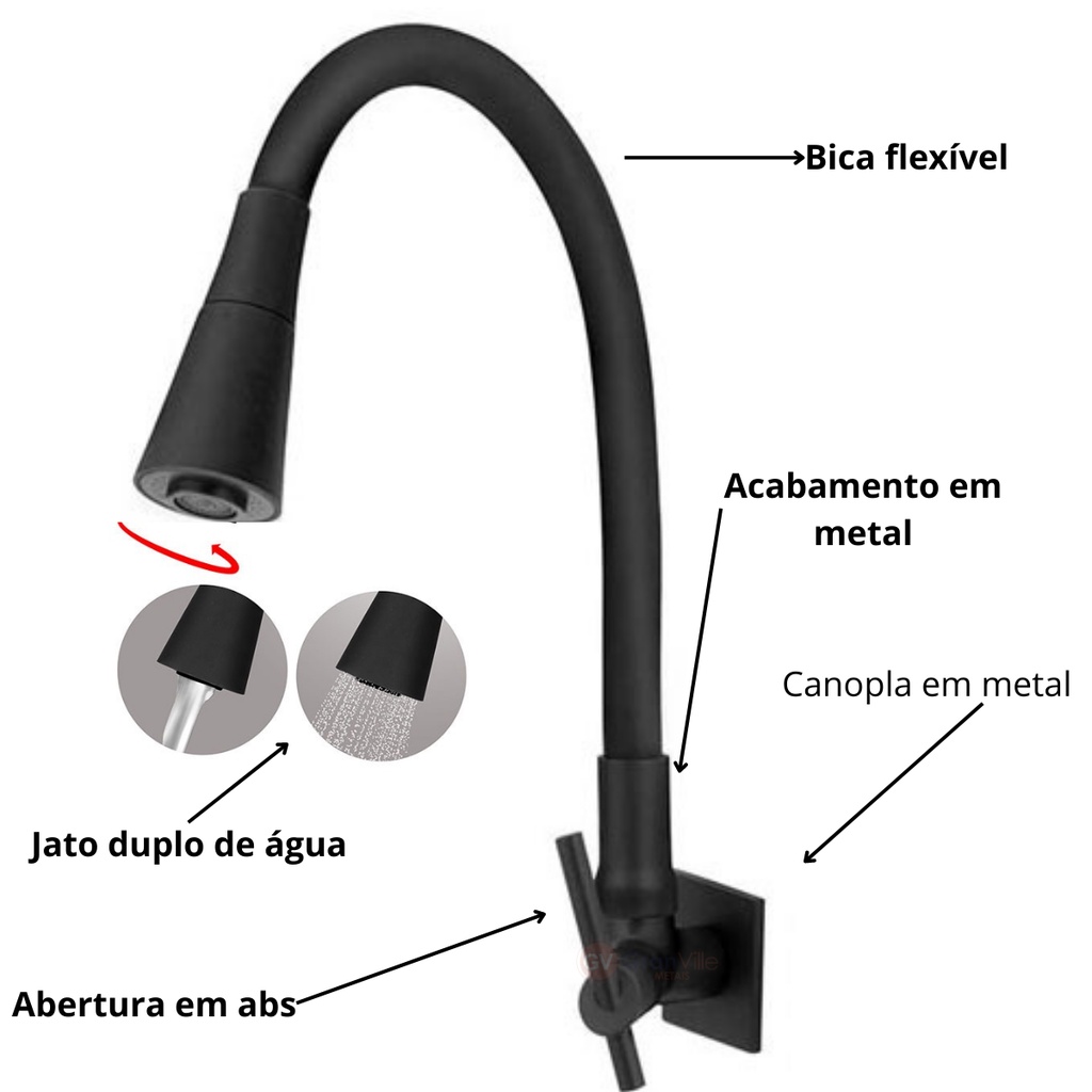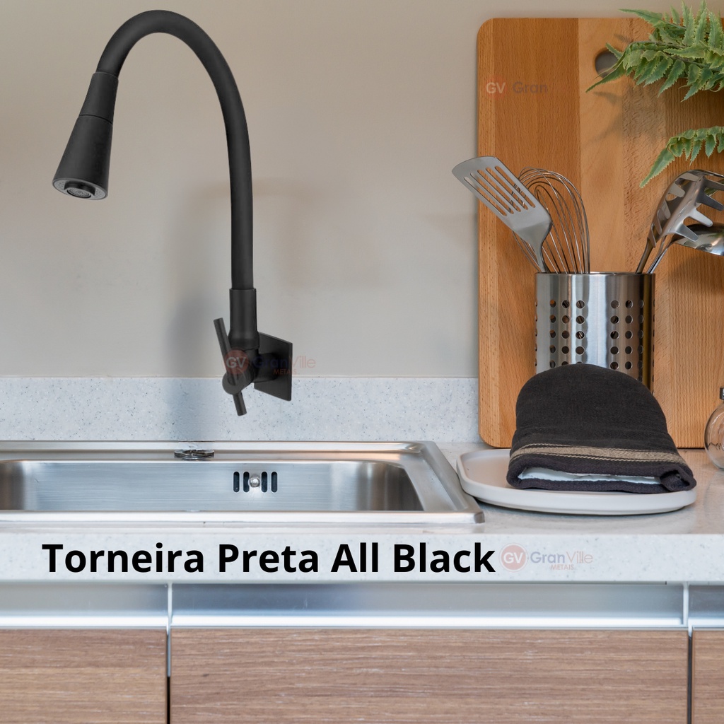Torneira de Cozinha Gourmet de Parede Preta All Black Metal 2 Acionamentos 1/4 de Volta Super Luxo