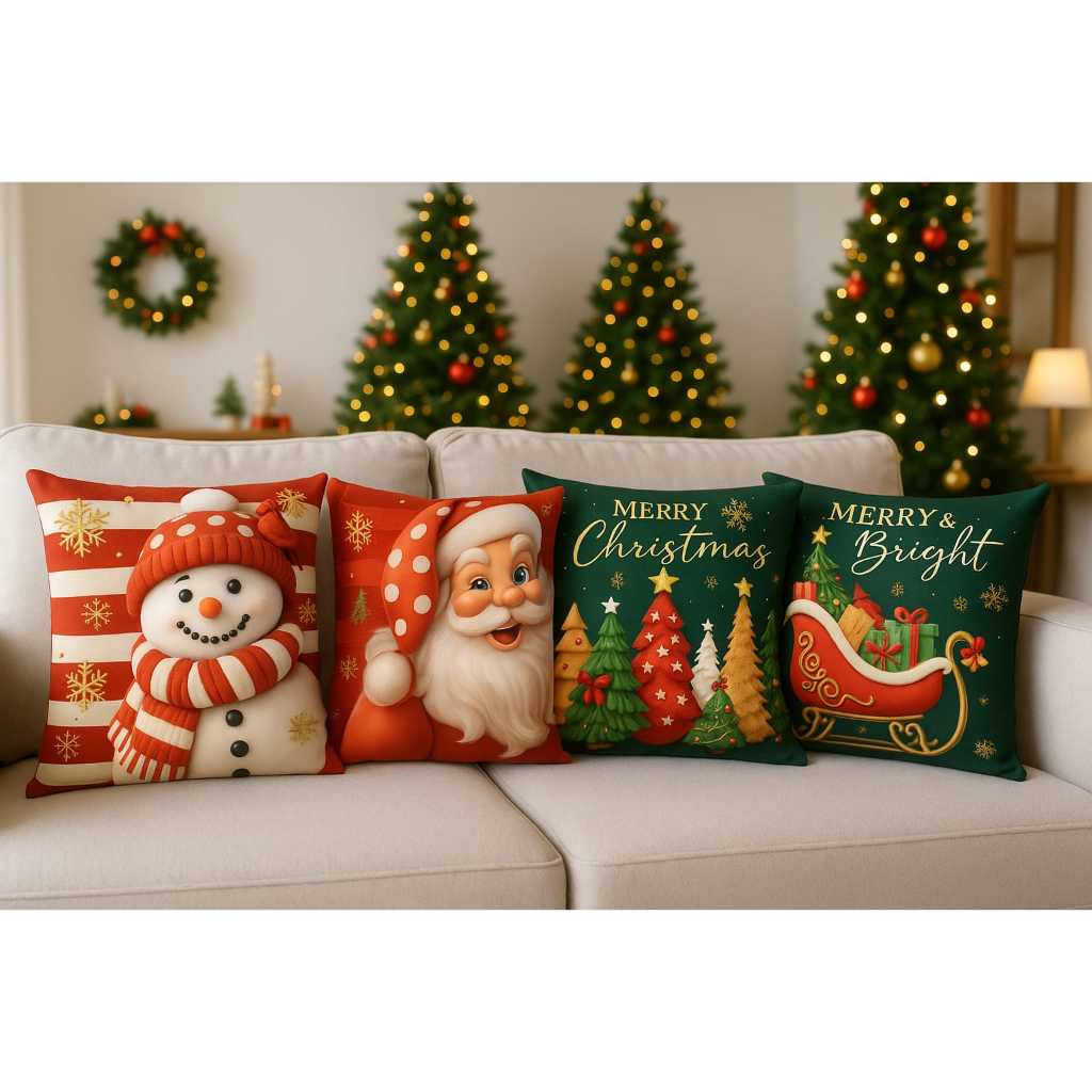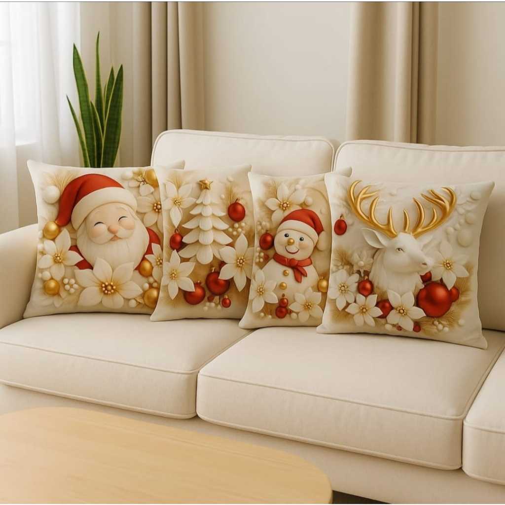 Kit 4 Capas de Almofada de Natal - Decoração Festiva