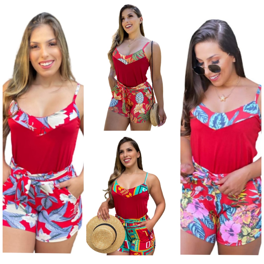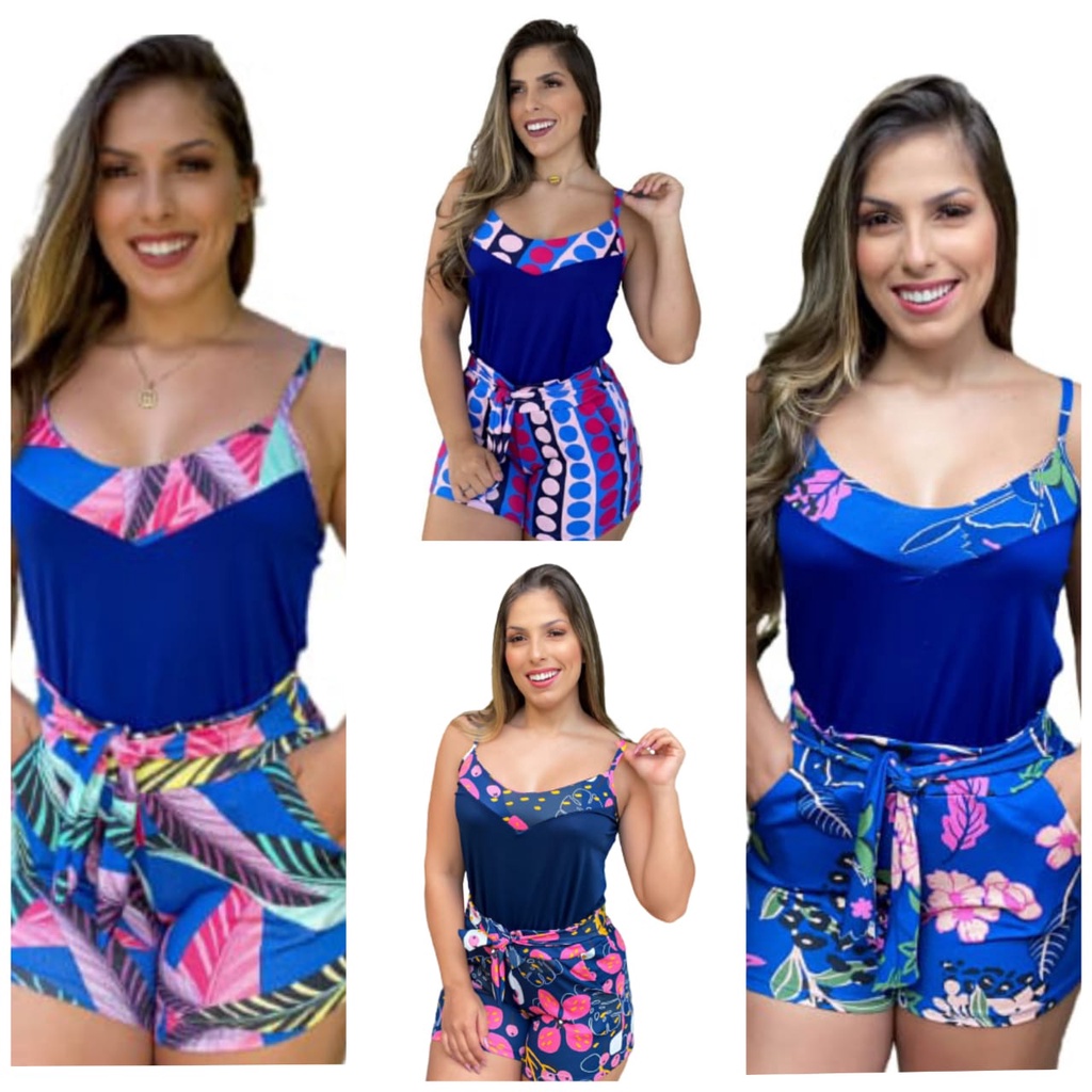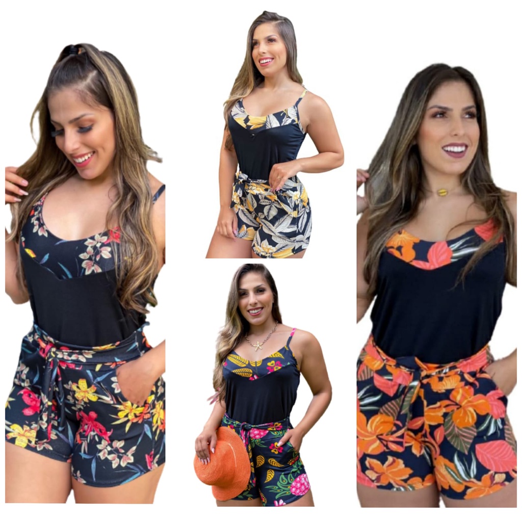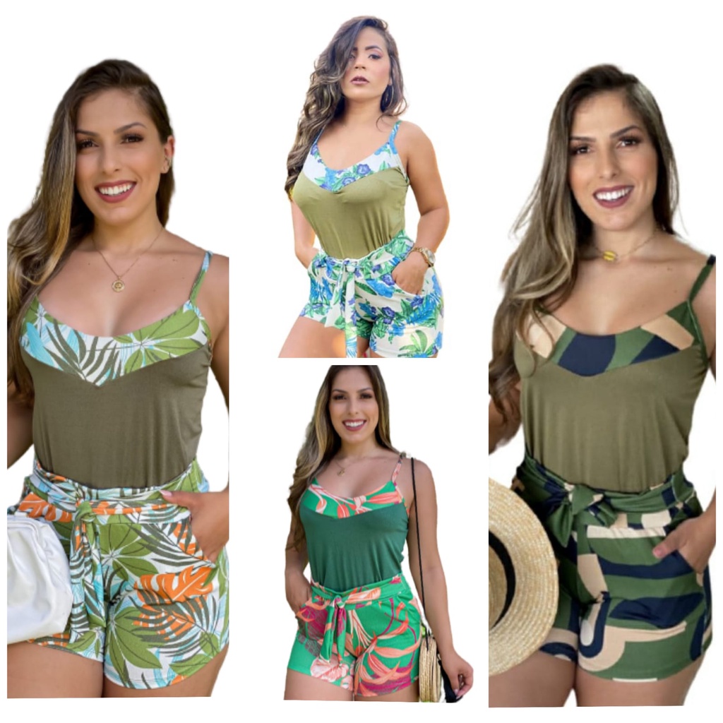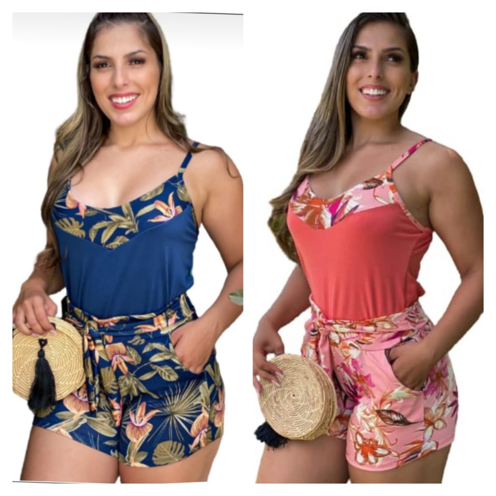 Kit Blusa de Alça + Short Cinto e Bolso Lindos M G 38-44. Barato.