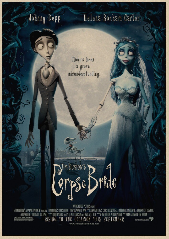 Cartazes Tim Burton . O Corpo Noiva Johnny Depp Vintage Retro/Matte/Papel Kraft/Antiguidade