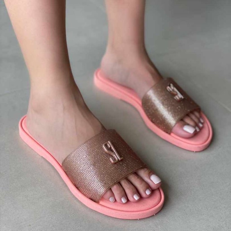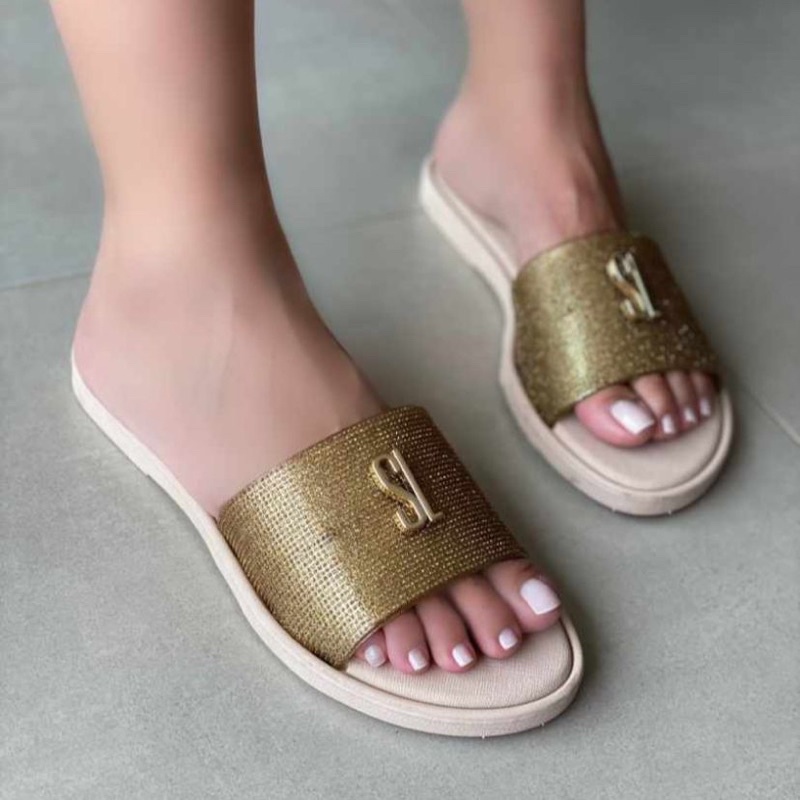Rasteira Feminina Rasteirinha Macia Confortável Glitter Stras