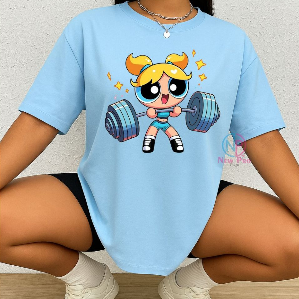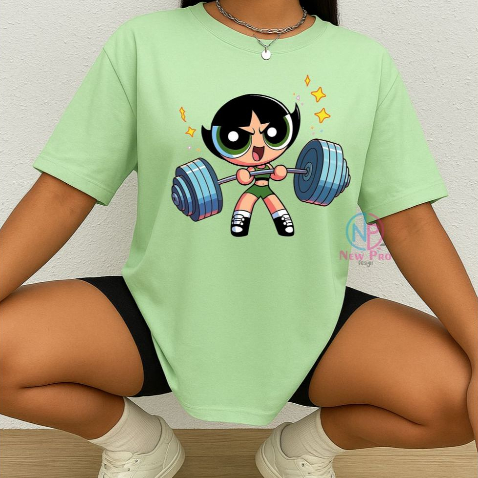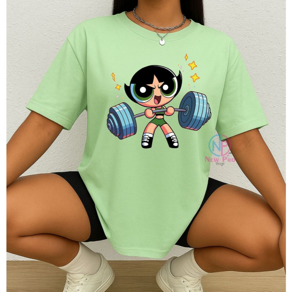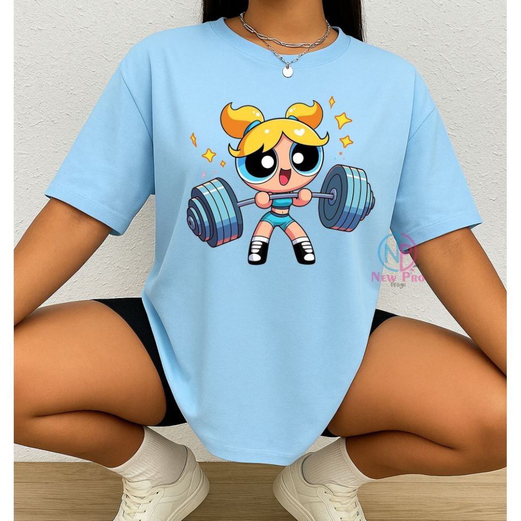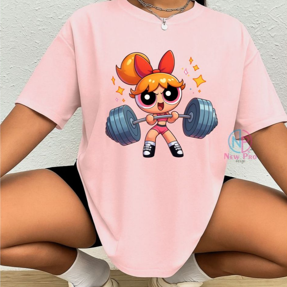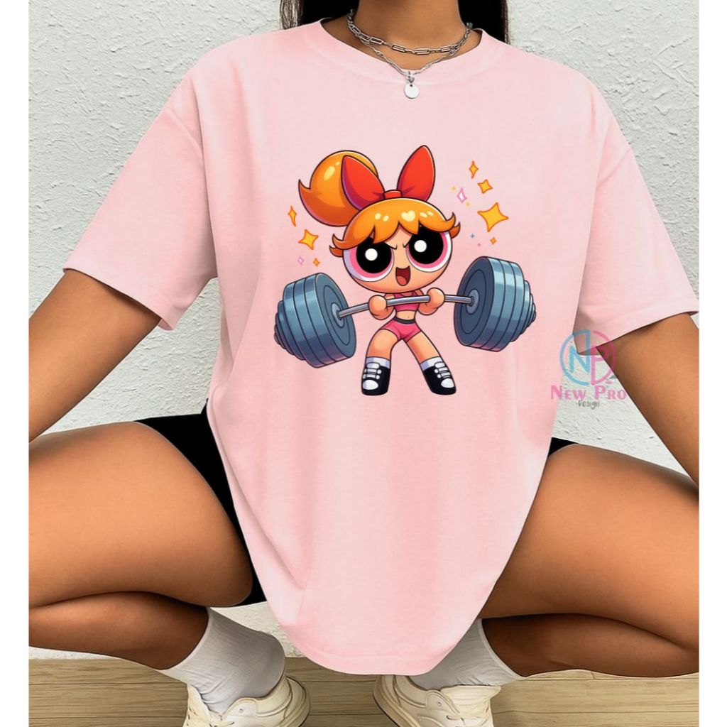Camiseta Treino Feminina Docinho Oversized Roupas de Academia Look de Treino Super Poderosas Meme