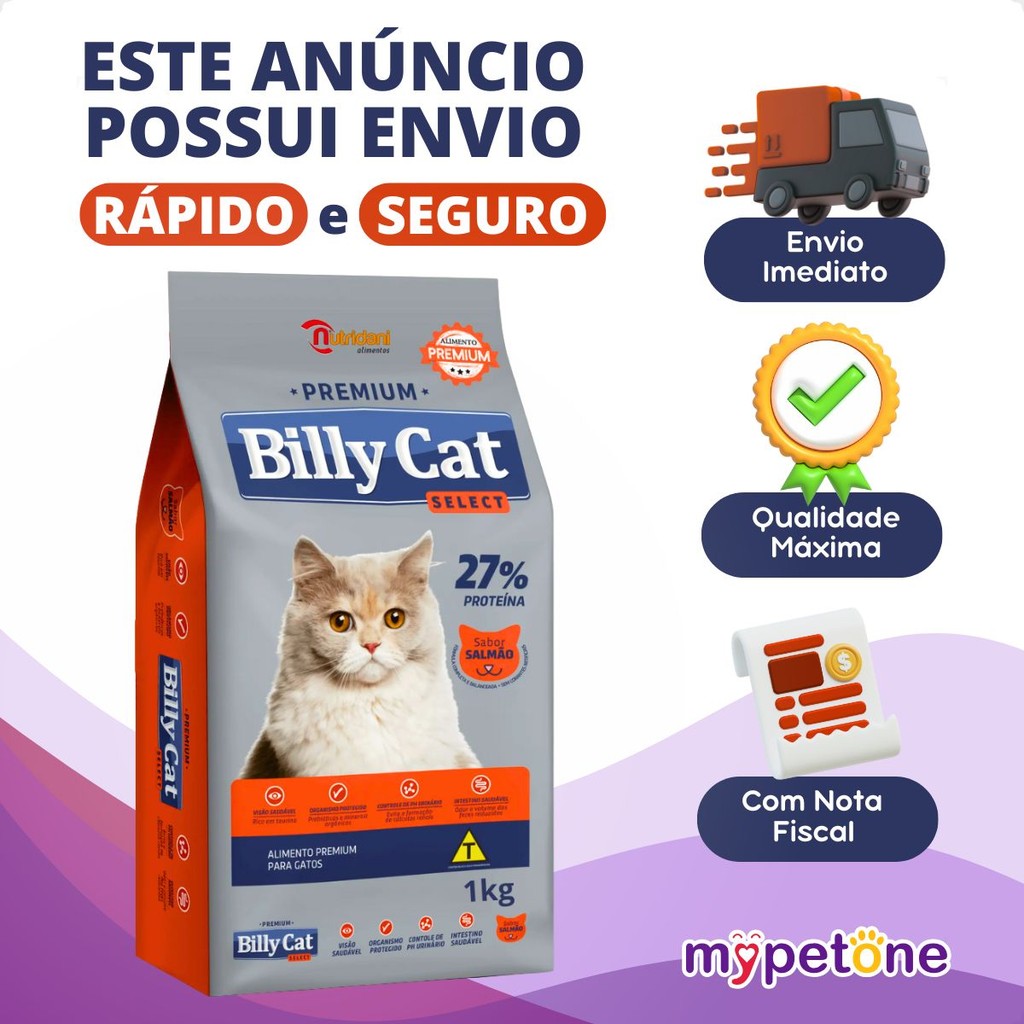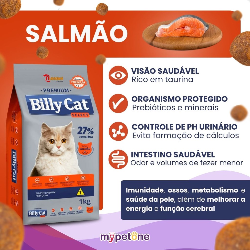 Ração Billy Cat Select Gatos Adultos Salmão - 1Kg