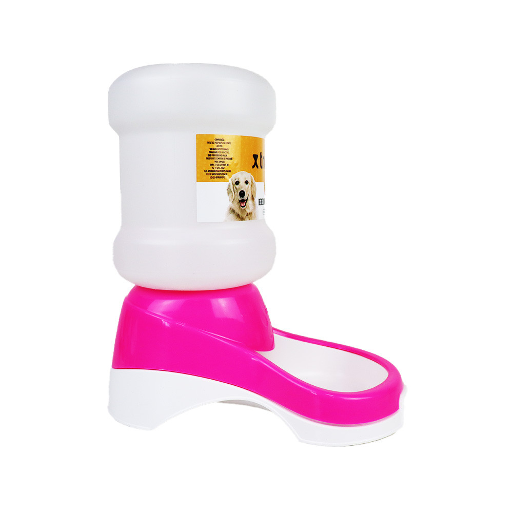 Kit Comedouro + Bebedouro Automático Truqys Pets Rosa Galão - 2 Litros