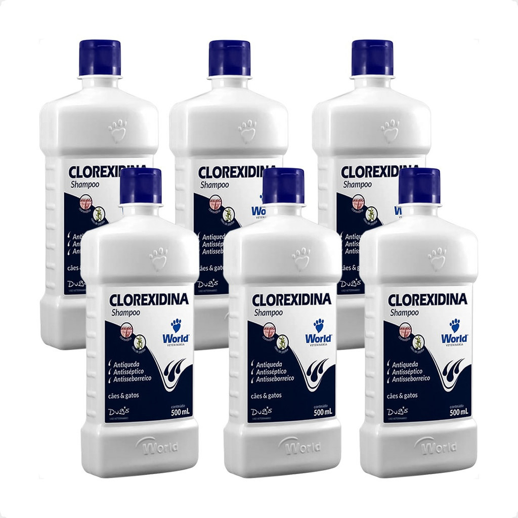 Kit 6 Shampoo World Veterinária Dug's Clorexidina Cães & Gatos - 500 mL