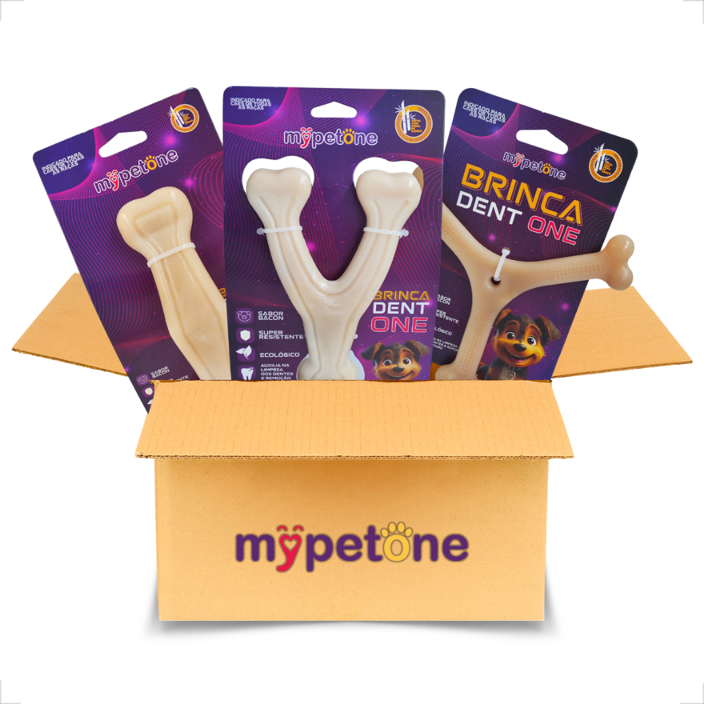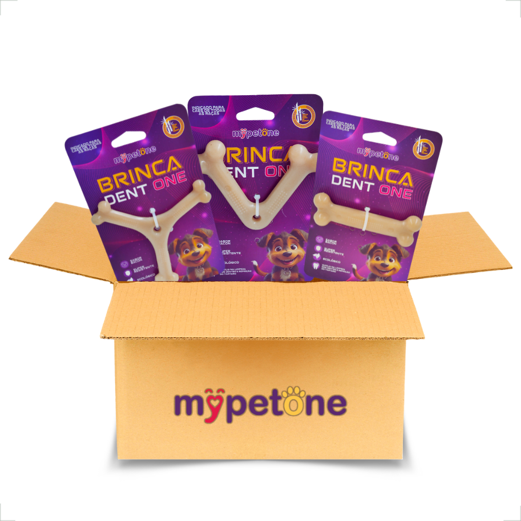 Kit 3 Unidades Brinca Dent One Brinquedo Osso Bamboo Sabor Bacon - MyPetOne