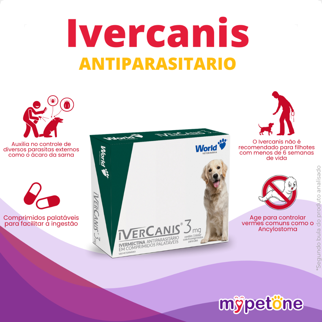 Kit 2 IverCanis 3mg para Cães de 15Kg - Blíster 4 Comprimidos