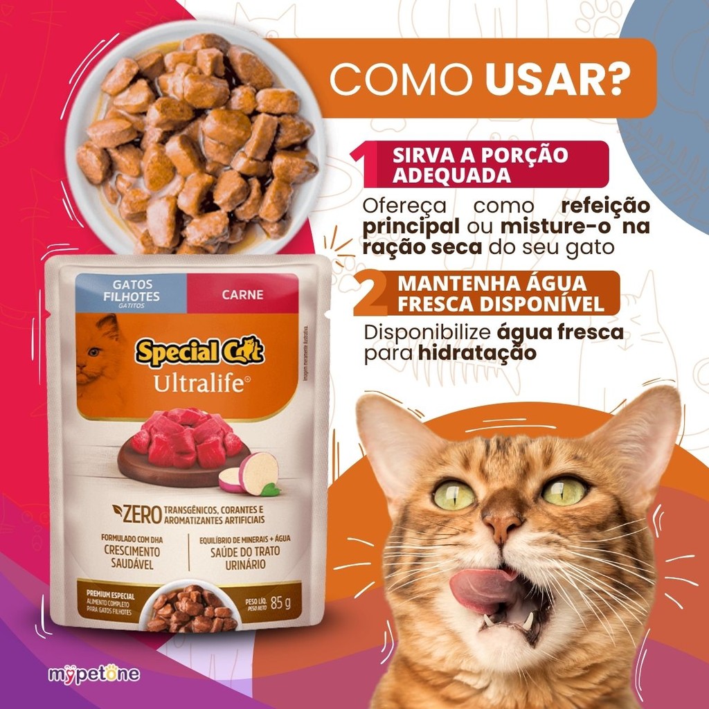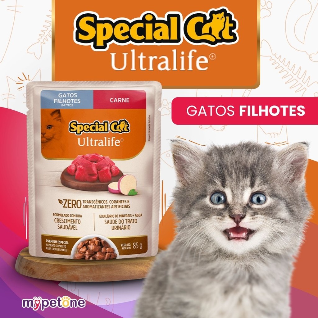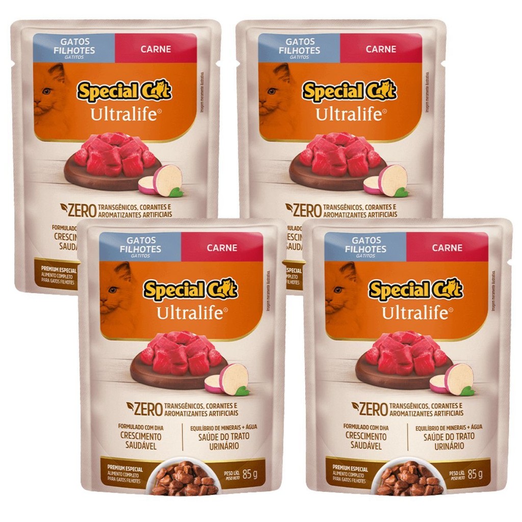 Kit 4 Caixa 12 Sachê Special Cat Ultralife Filhotes Sabor Carne - 85g